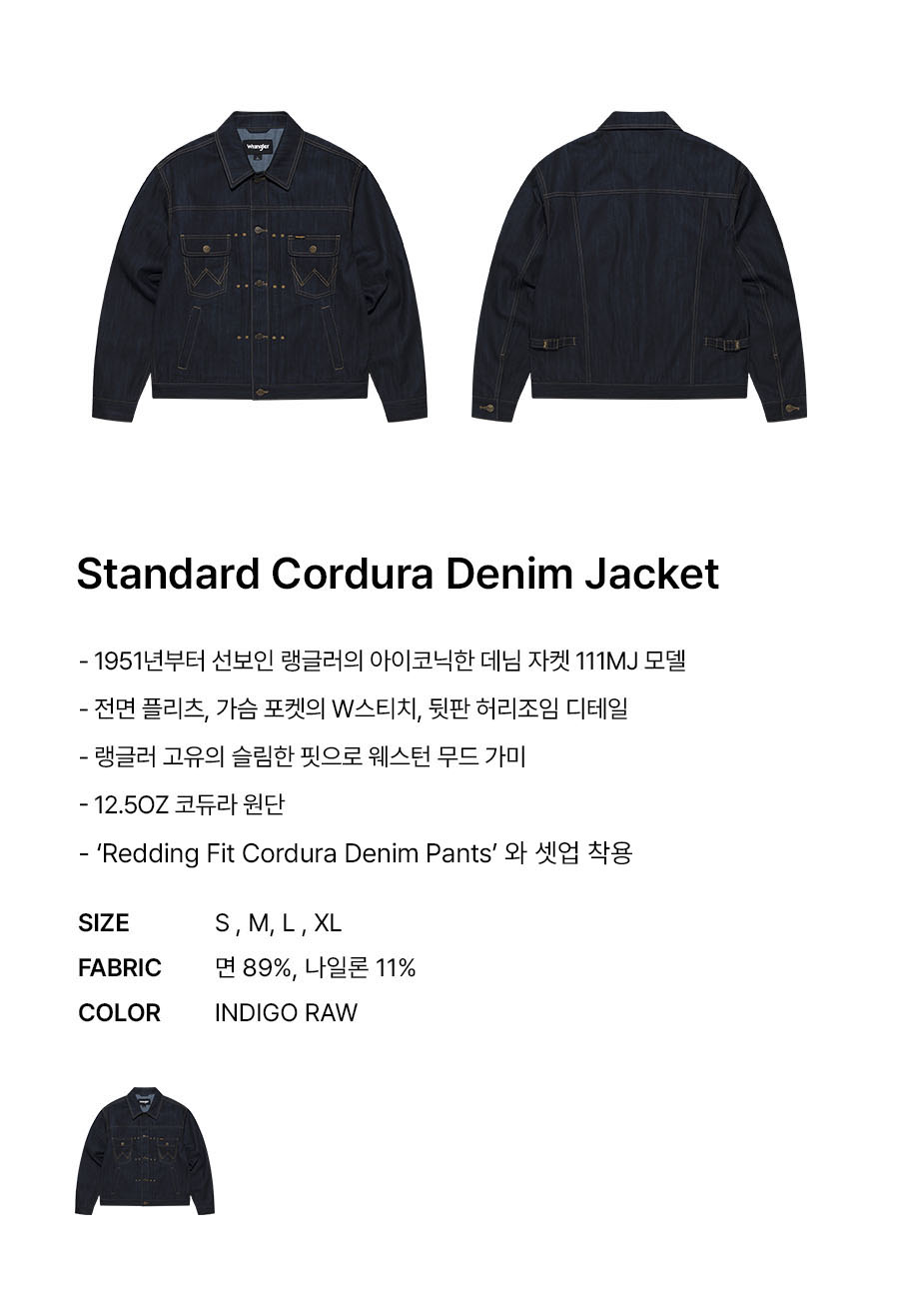 랭글러 스탠다드 코듀라 데님 자켓 111MJ 인디고 로우