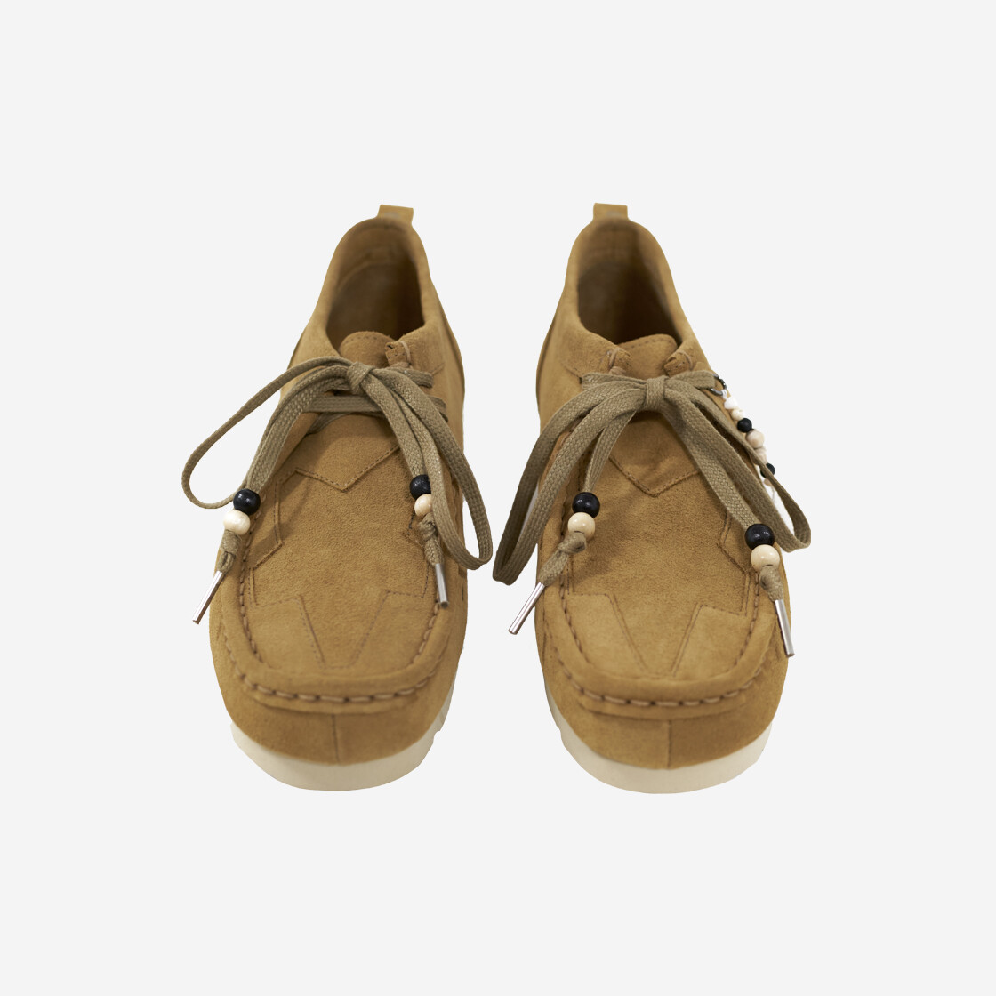 * 본 제품은 조금 더 날렵하게 깔리는 형태감, 끈을 조였을 때 연출 되는 특유의 탑 쉐입 각이 가장 특징입니다. 후면의 뒷꿈치 덧댐 디테일 등은 스웨이드 슈즈로서 사용감이 누적되며 보다 자연스럽고 멋진 형태로 변형해나갈 수 있는 방식으로 마감되어 있습니다.