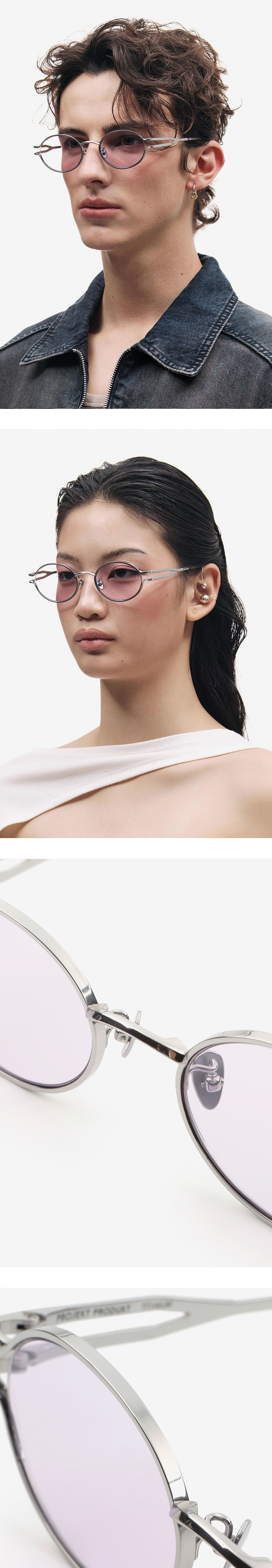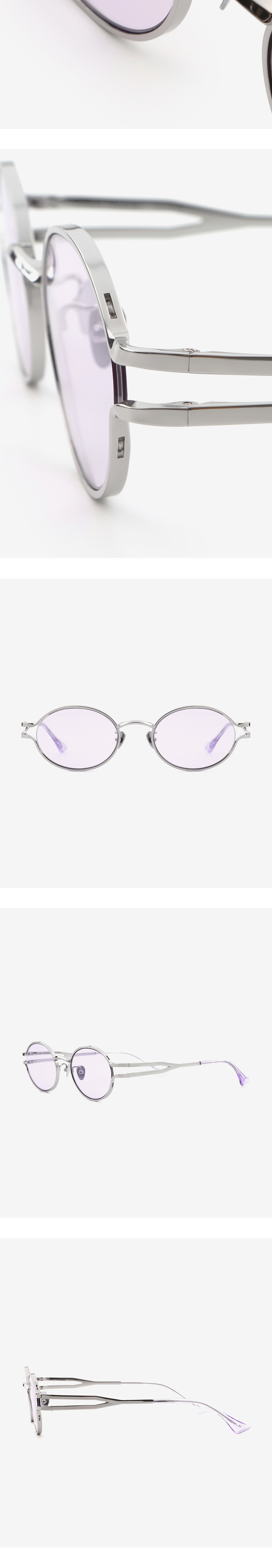 각진 브릿지와 대비되는 부드러운 오벌 형태 안구의 조화로 독특하게 완성된 오벌 티타늄 선글라스. 비정형적인 엔드피스 디테일과 프레임에서 템플로 자연스럽게 이어지는 두 개의 메탈 라인이 하나로 연결되는 형태가 조형적 입체감을 부여하며 아이코닉한 매력을 더합니다.
