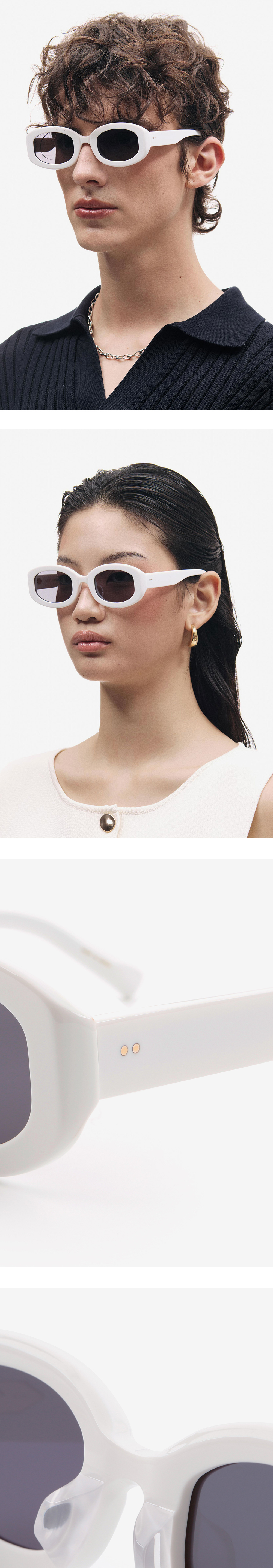 곡선의 조화로 이루어진 둥근 직사각형의 아세테이트 선글라스. 브릿지와 안구 가장자리의 섬세한 엣지를 주어 유니크한 개성을 담아냈습니다.
