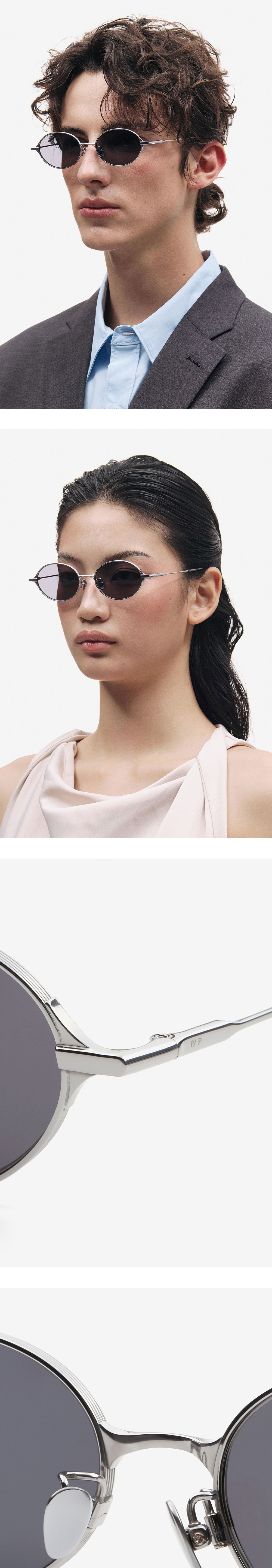 비정형적인 메탈 볼륨감을 사용하여 PROJECT12 테마인 인간다움(Humanity)을 표현한 오벌 티타늄 안경. 볼륨감이 돋보이는 브릿지와 엔드피스-템플의 디테일은 메탈이 덧붙이는 느낌을 주어 독특한 개성을 더하였습니다.