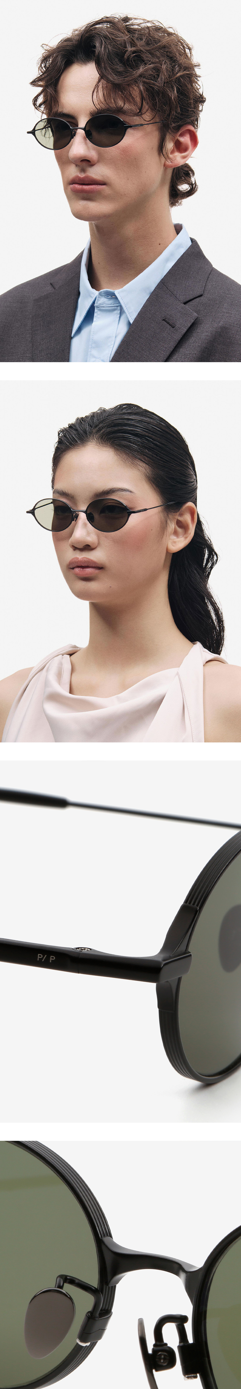 비정형적인 메탈 볼륨감을 사용하여 PROJECT12 테마인 인간다움(Humanity)을 표현한 오벌 티타늄 안경. 볼륨감이 돋보이는 브릿지와 엔드피스-템플의 디테일은 메탈이 덧붙이는 느낌을 주어 독특한 개성을 더하였습니다.