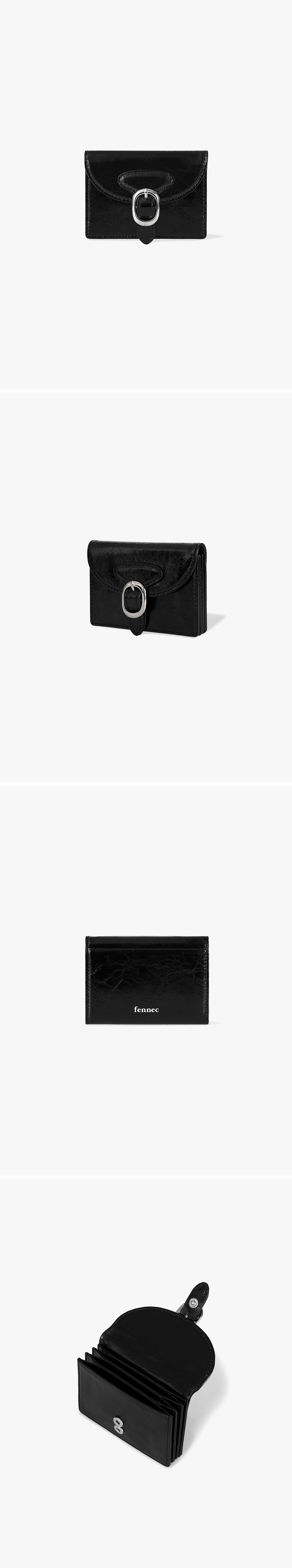 - 광택감이 돋보이는 크링클 텍스처 소가죽 - 클래식한 버클이 포인트인 아코디언 카드 포켓 - 카드칸 4, 카드칸 1(외부)