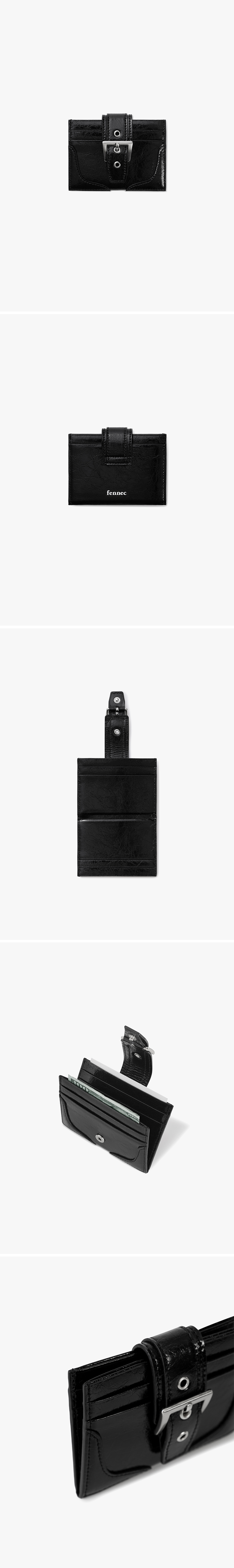 - 광택감이 돋보이는 크링클 텍스처 소가죽 - 벨트 버클 장식이 포인트인 컴팩트한 카드 포켓 - 카드칸 9
