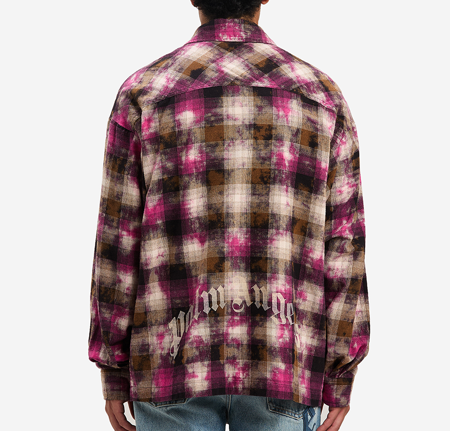 팜엔젤스 커브드 로고 체크 셔츠 롱슬리브 퓨시아 - 오프 화이트
