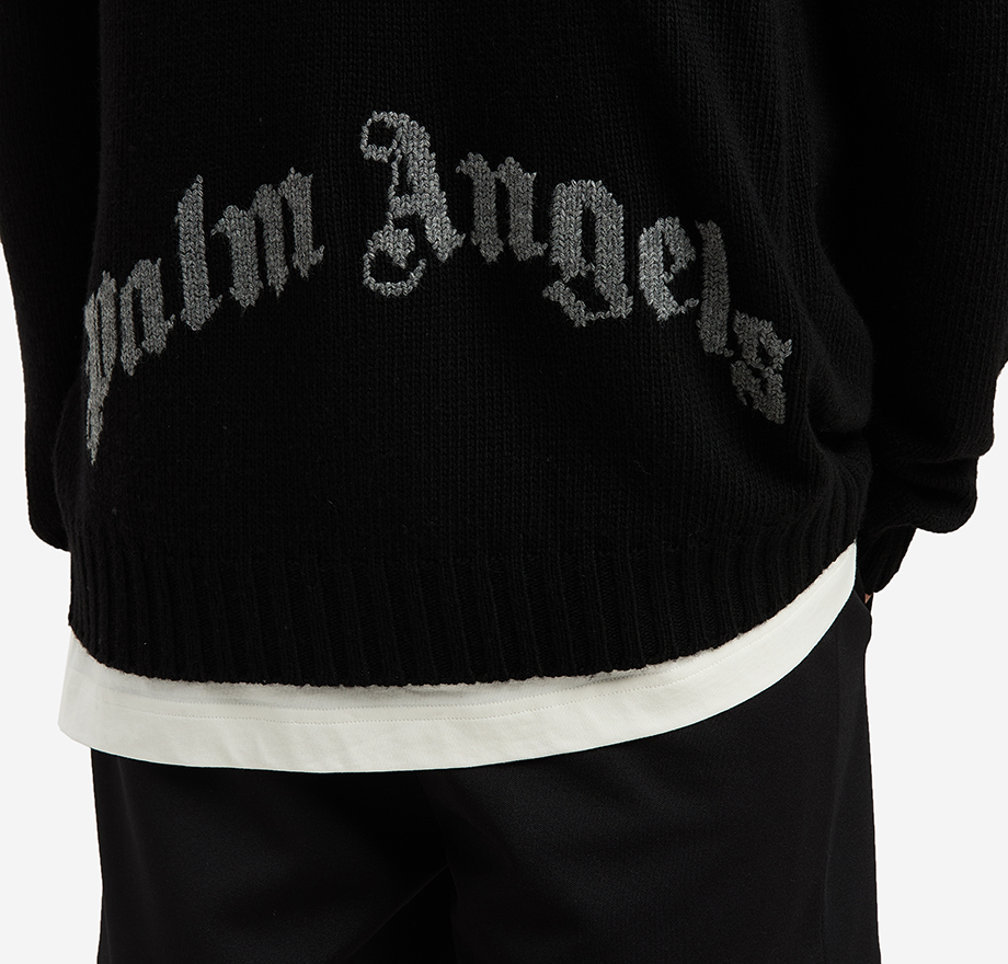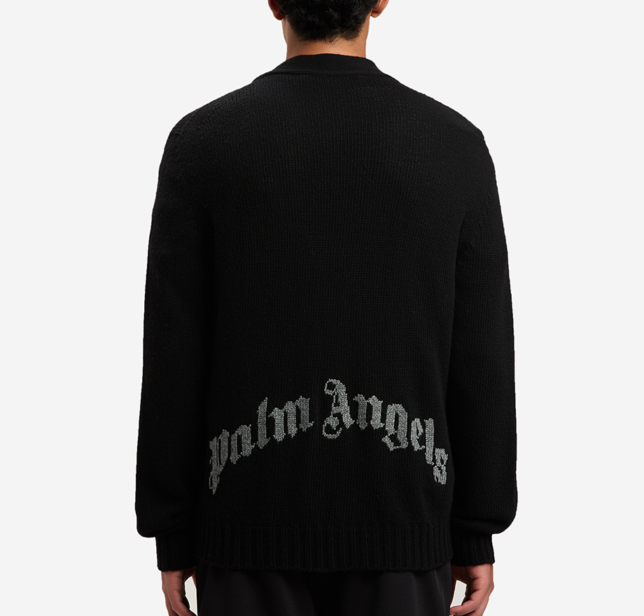 PALM ANGELS Curved Logo Cardigan Black - Grey Melange