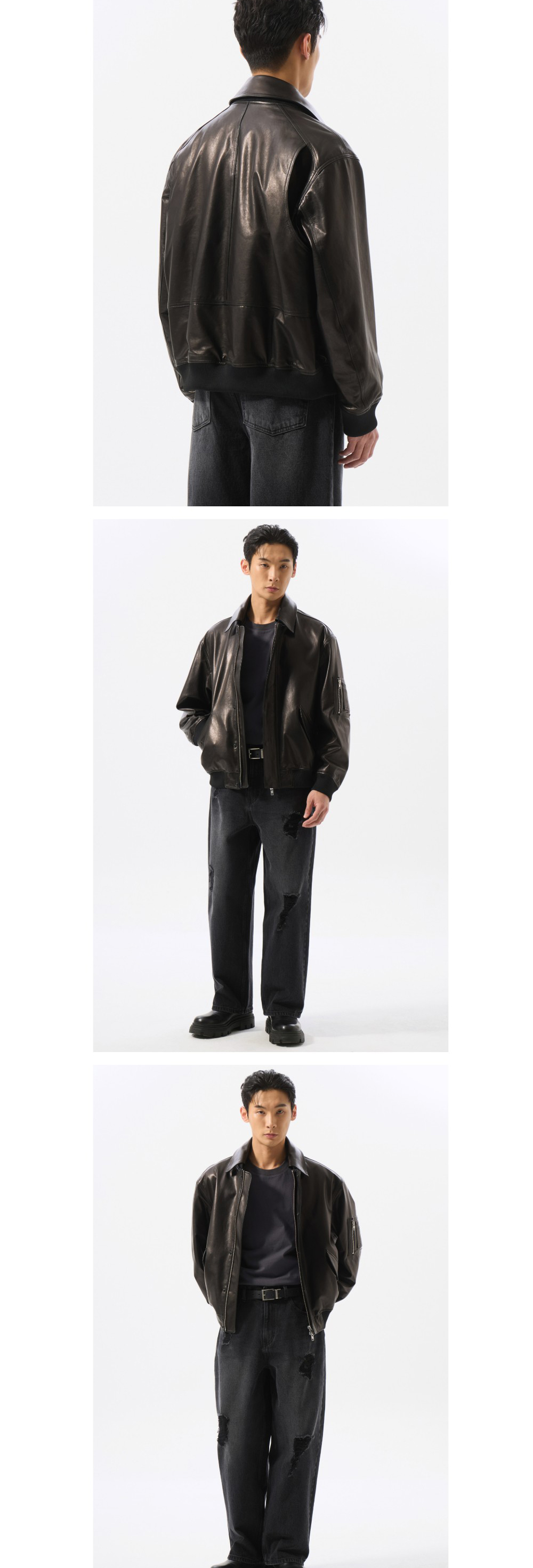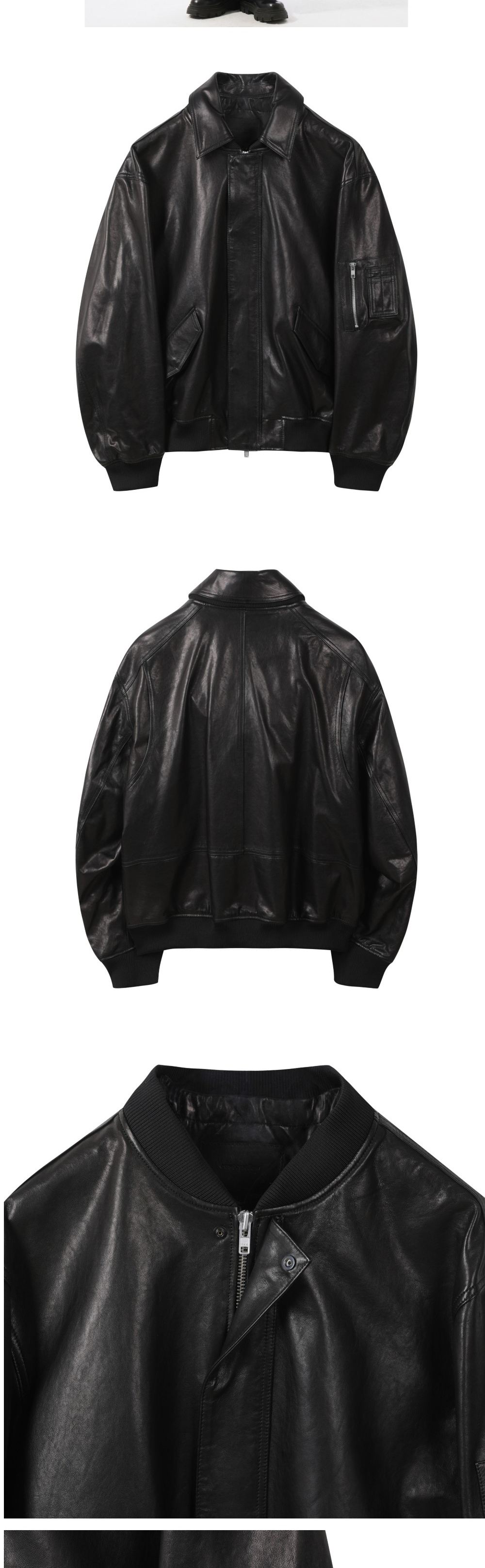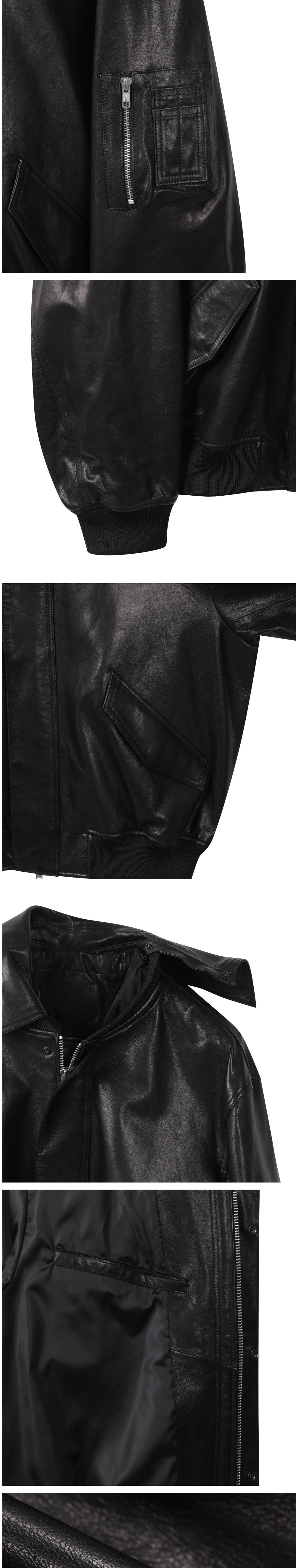 커스텀멜로우 디테쳐블 칼라 레더 블루종 블랙