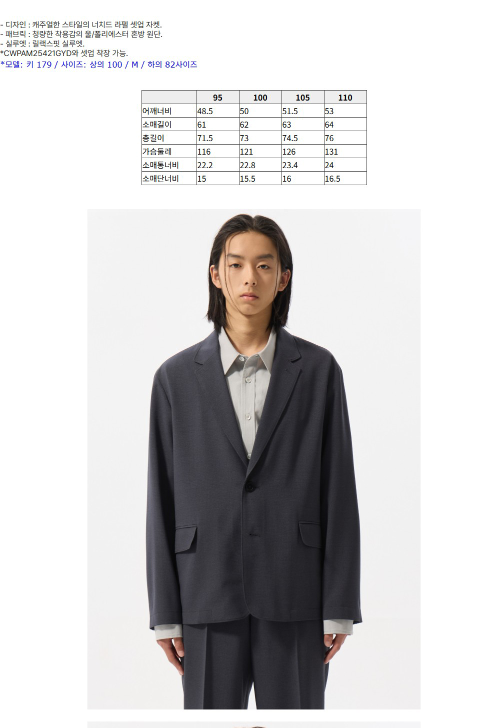 커스텀멜로우 릴렉스 핏 셋업 자켓 다크 그레이