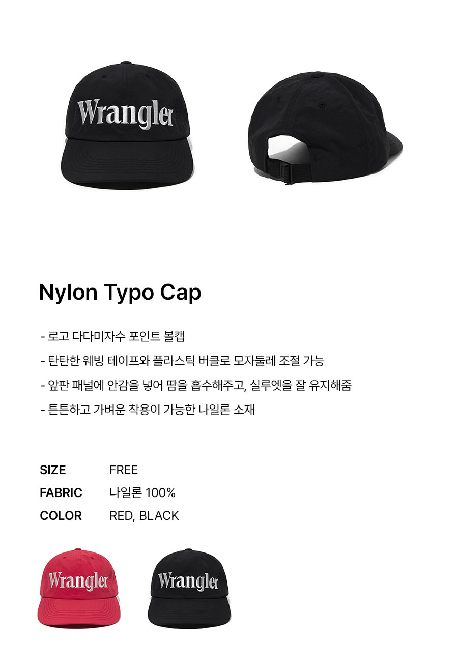 랭글러 나일론 타이포 캡 블랙
