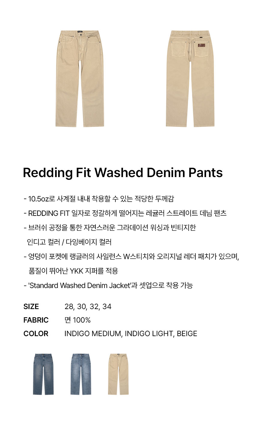 랭글러 레딩핏 워시드 데님 팬츠 베이지