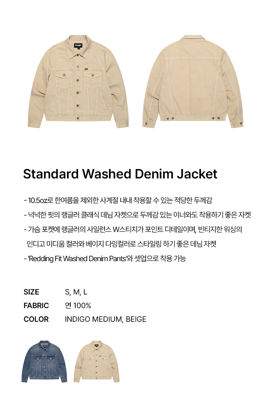 랭글러 스탠다드 워시드 데님 자켓 베이지