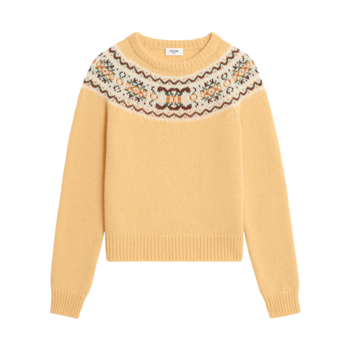 (W) 셀린느 트리옹프 페어 아일 울 크루넥 스웨터 옐로우