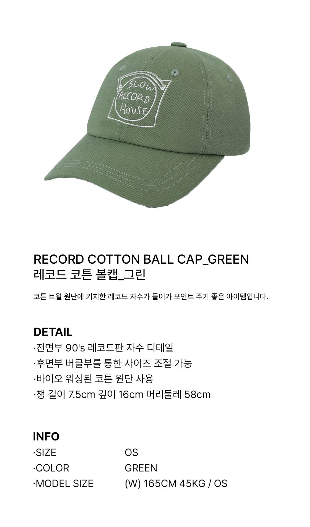 슬로우 레코드 하우스 레코드 코튼 볼캡 그린