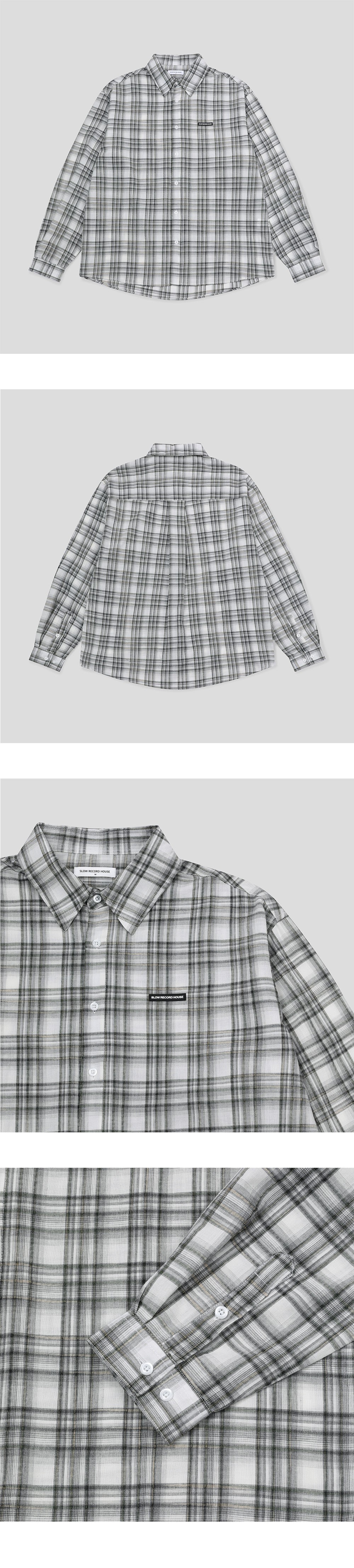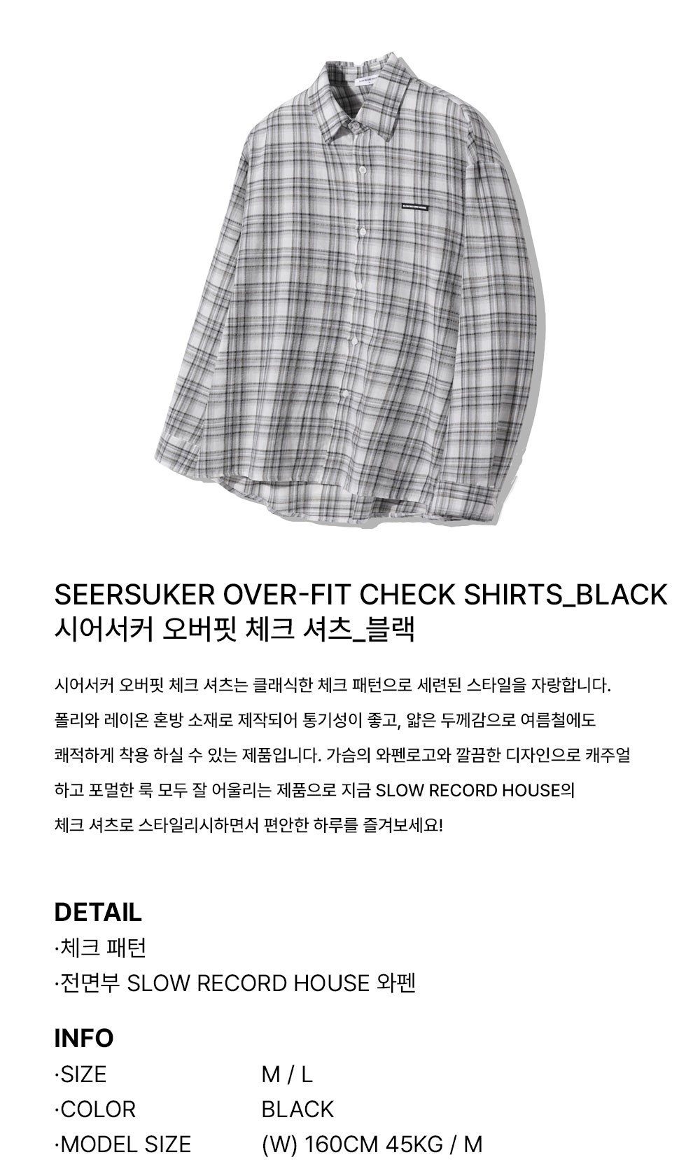 슬로우 레코드 하우스 시어서커 오버핏 체크 셔츠 블랙