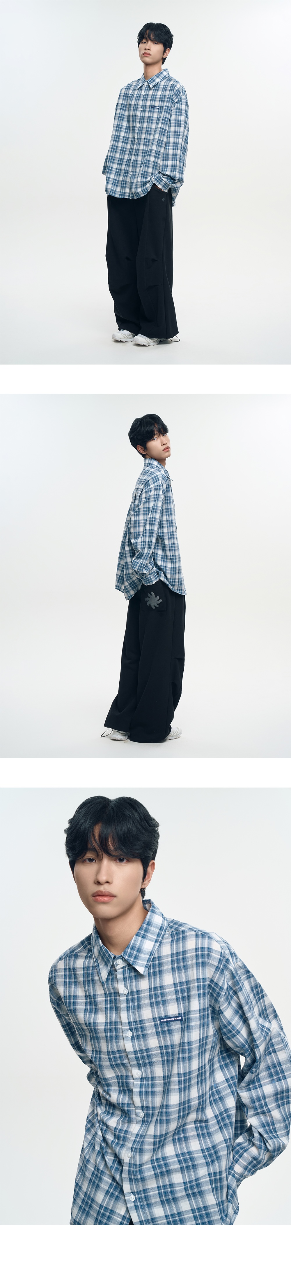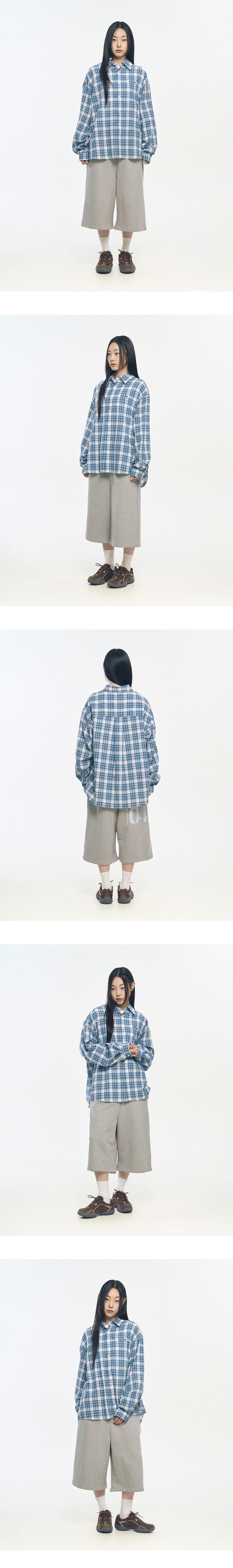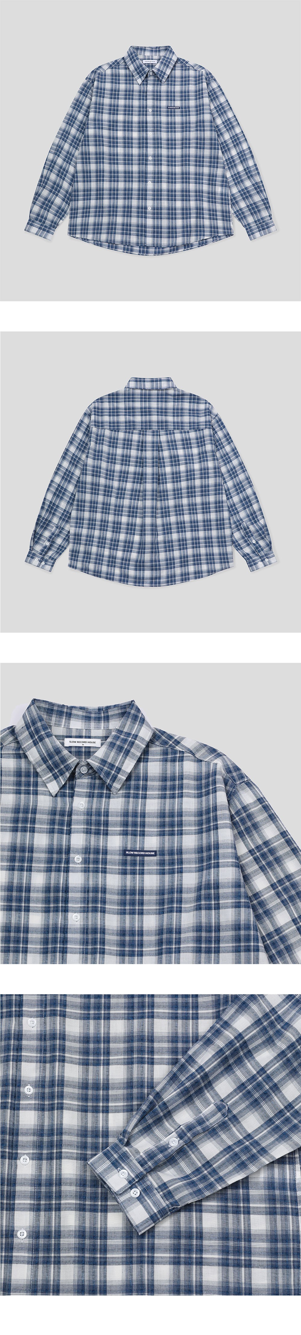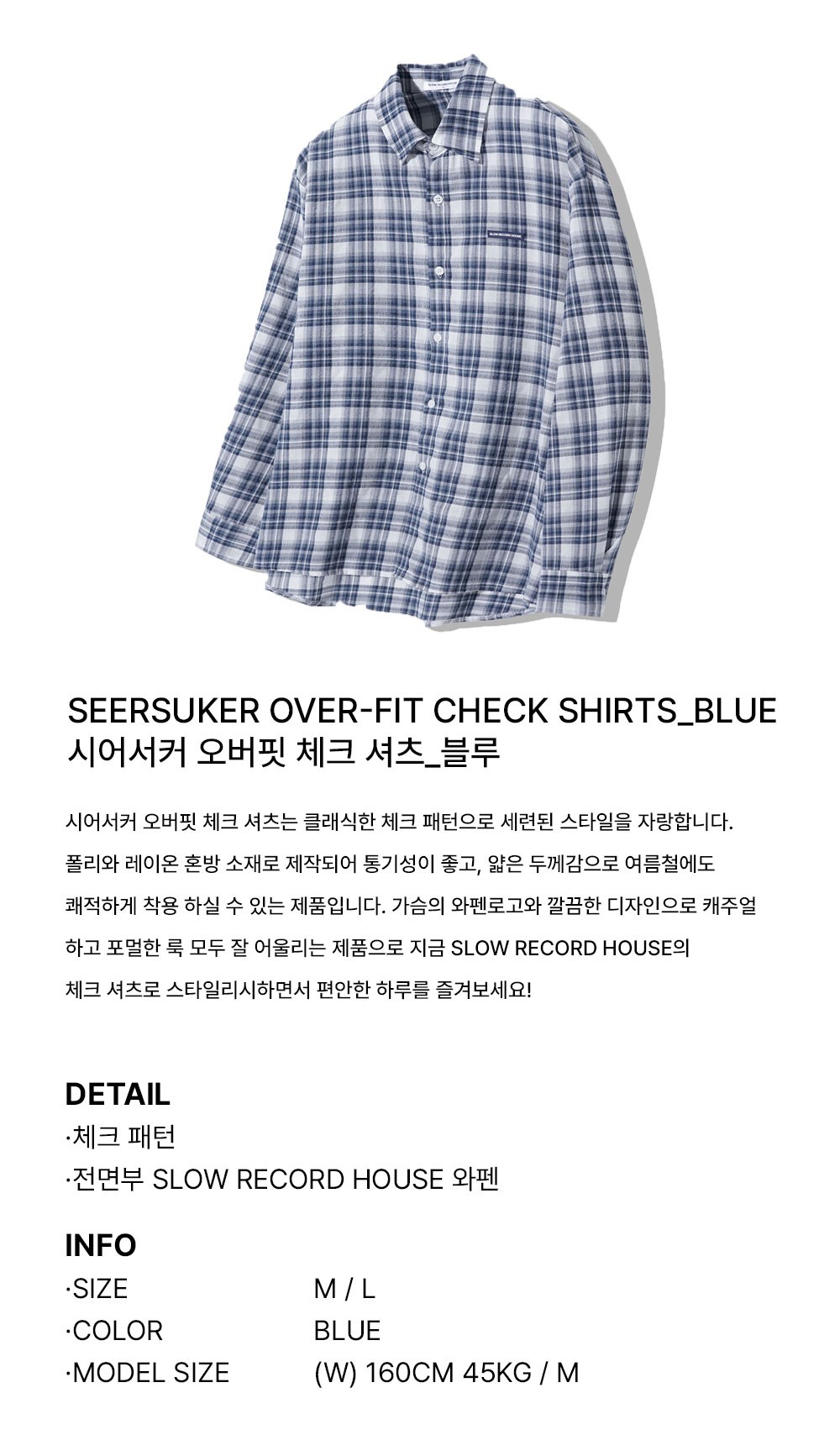 슬로우 레코드 하우스 시어서커 오버핏 체크 셔츠 블루