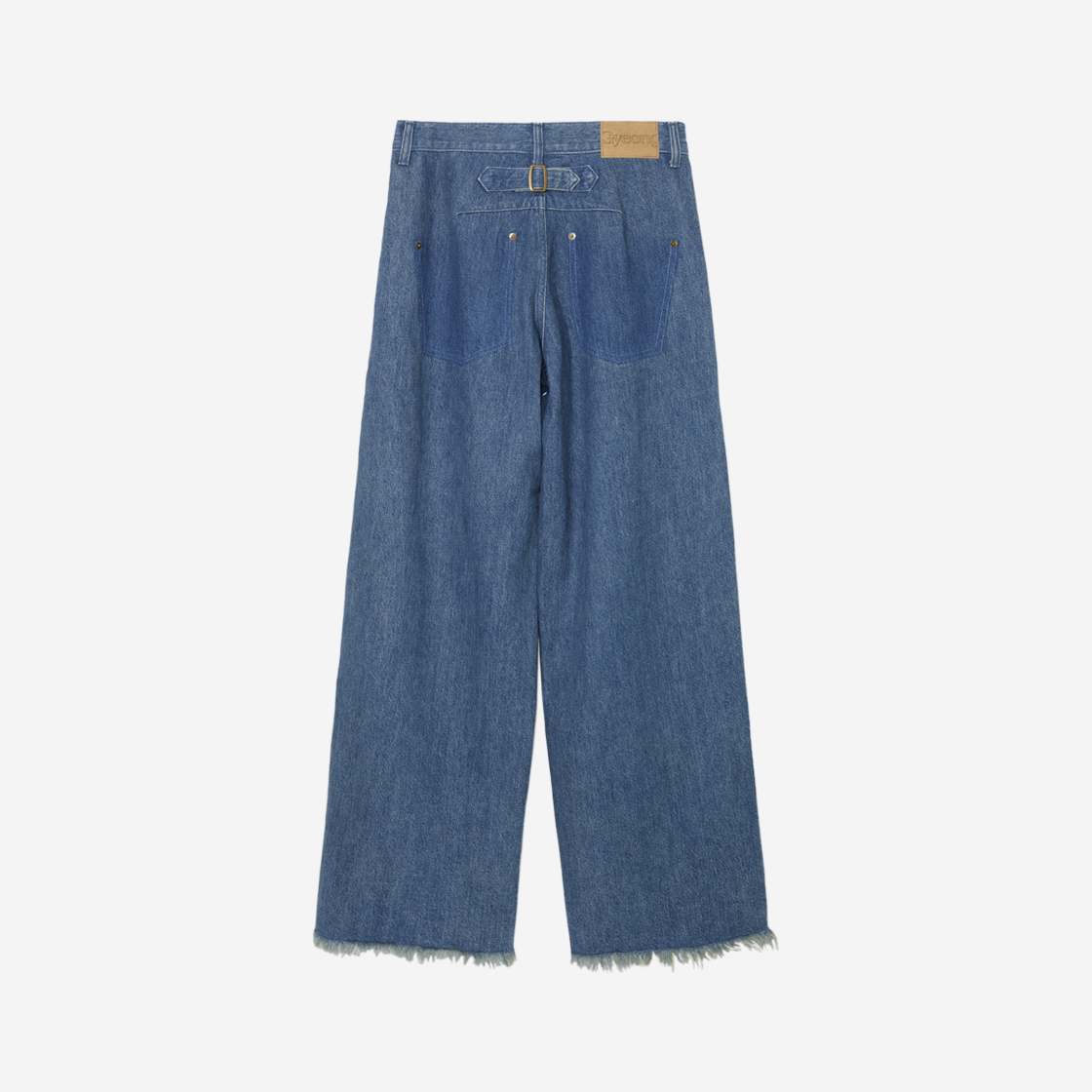 - 투톤 배색의 데님 팬츠 - 전면 오비 하단 리벳 디테일로 포인트 - 후면 상단 비죠 디테일 - 후면 포켓 제거 워싱 디테일 - 편안한 착용감의 루즈핏 실루엣 * 168cm and she is wearing size 2 * Shell : 100% Cotton * Made in Korea