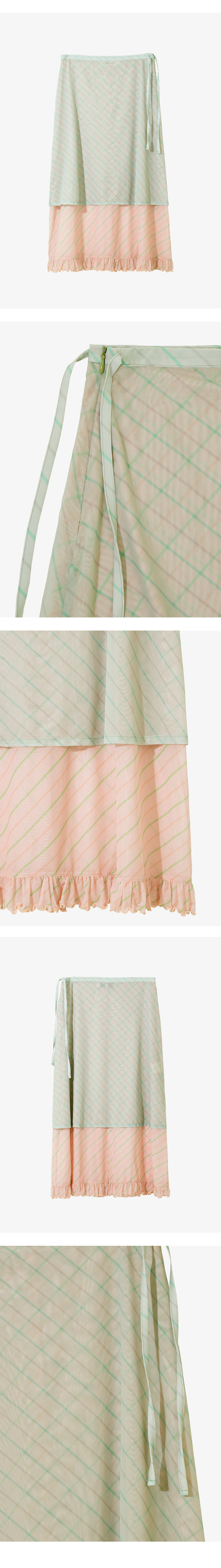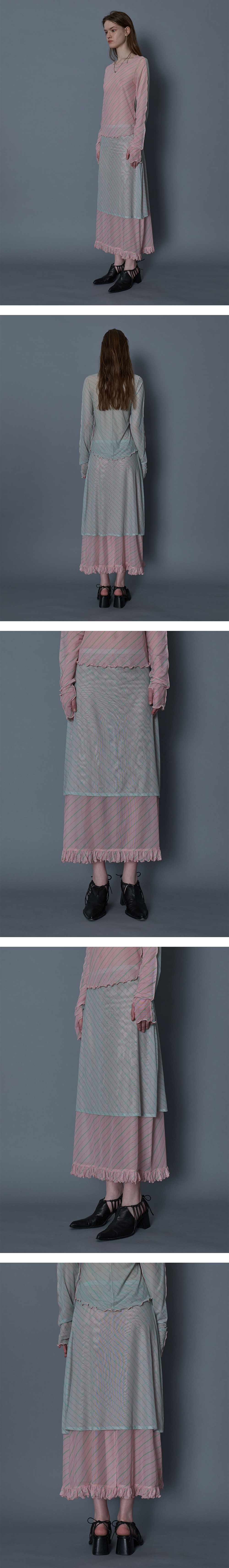 경 스트라이프 메쉬 더블 레이어드 스커트 핑크 & 라임