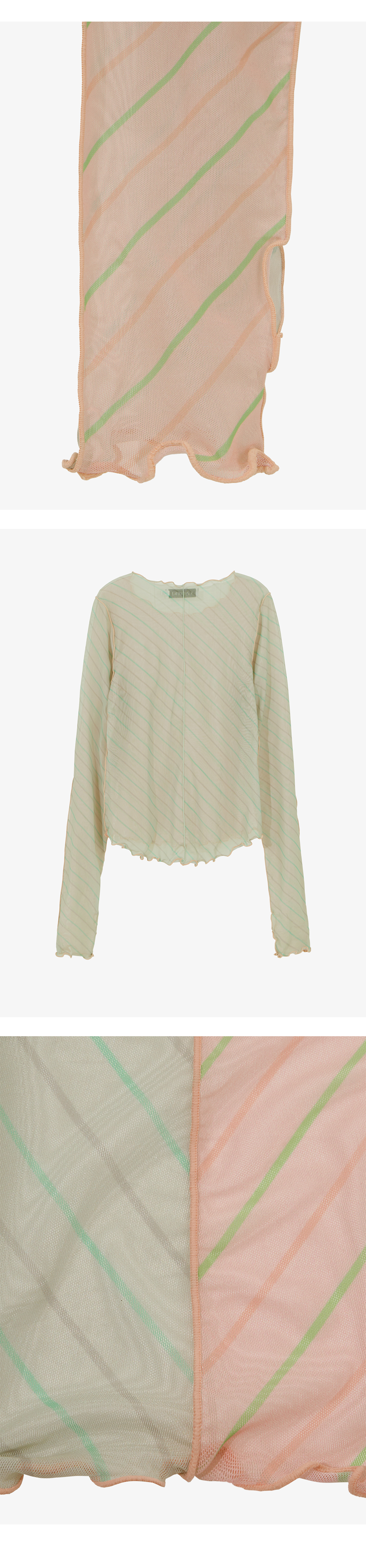 - 전면 프린팅의 스트라이프 메쉬 탑 - 레이어드 스타일링에 용이 - 웨이비한 사이드 및 후면 라인 디테일 - 핑거 홀 디테일 - 전 후면 배색 원단 사용 - 배색 컬러감의 사선 스트라이프 디테일 * 174cm and she is wearing size 1 * Shell : 87% Polyester, 13% Span * Made in Korea