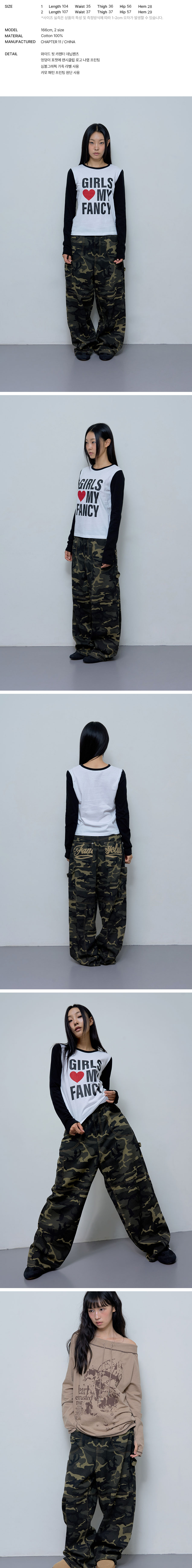 팬시클럽 카펜더 레터링 데님 팬츠 카키 카모
