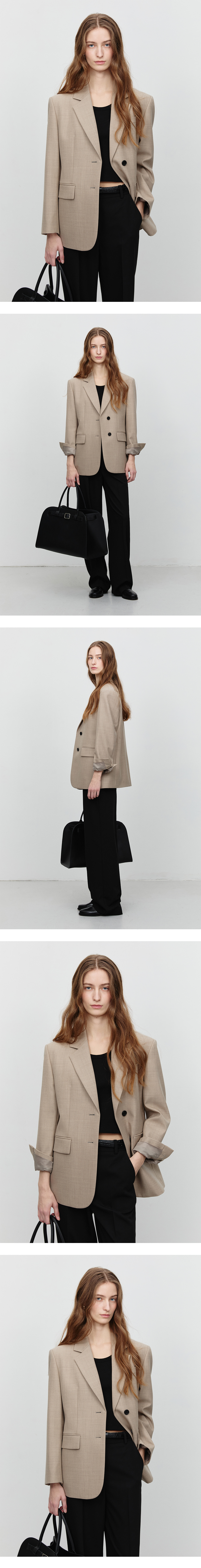 던스트 에센셜 2버튼 울 블레이져 멜란지 베이지