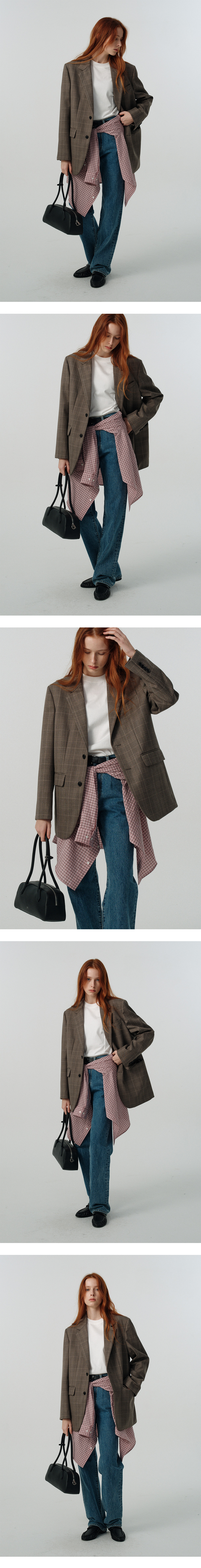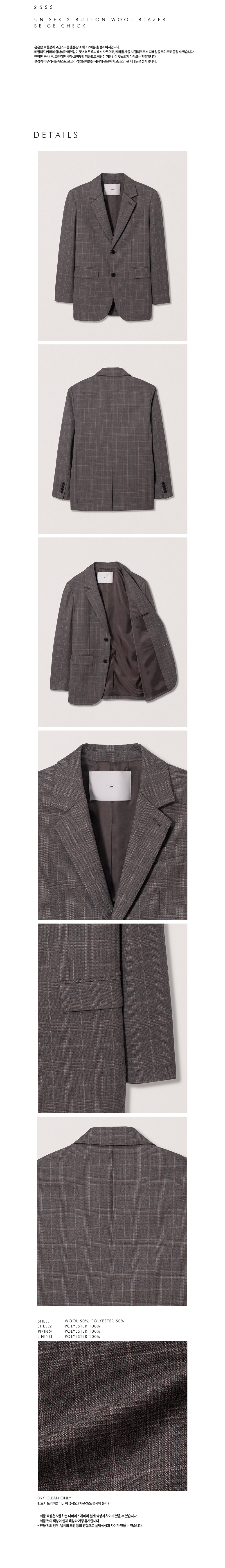 던스트 유니섹스 2버튼 울 블레이져 베이지 체크