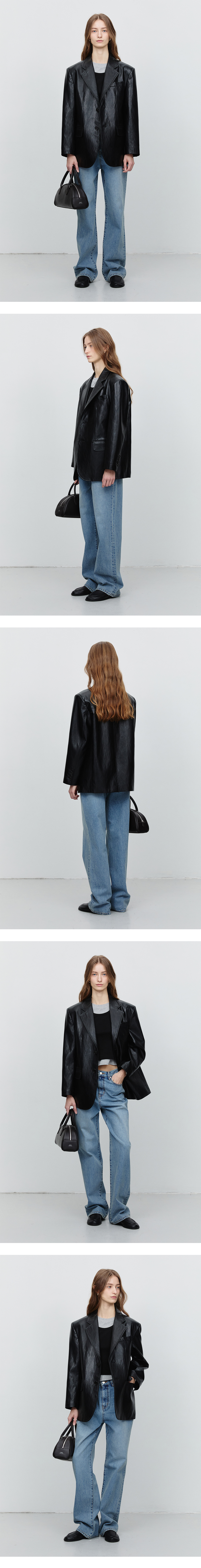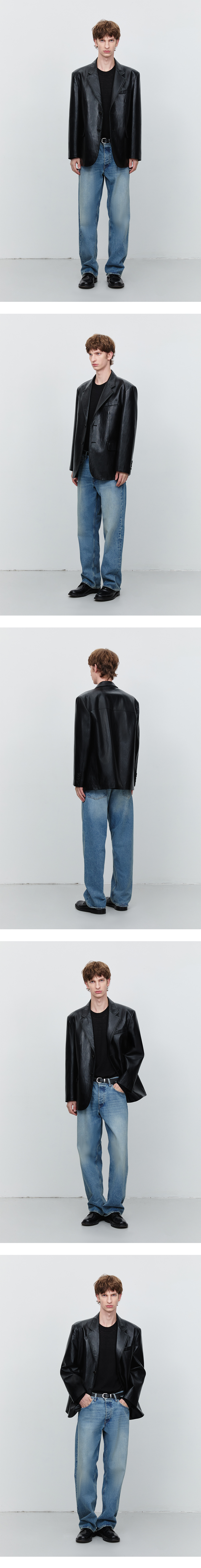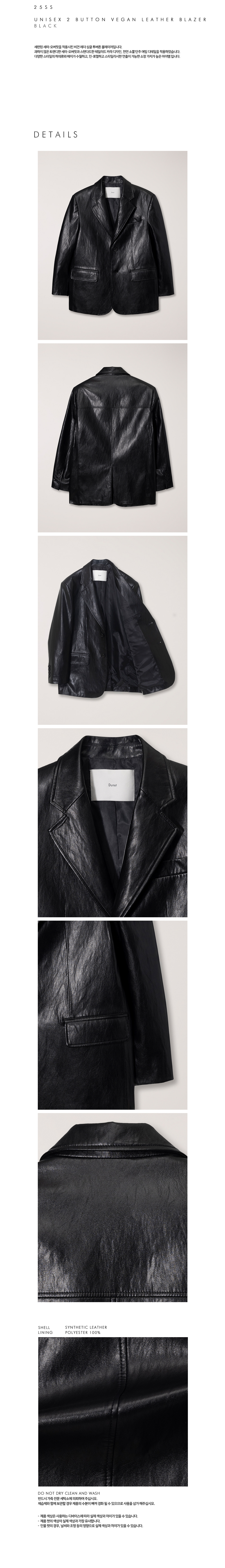 던스트 유니섹스 2버튼 비건 레더 블레이져 블랙