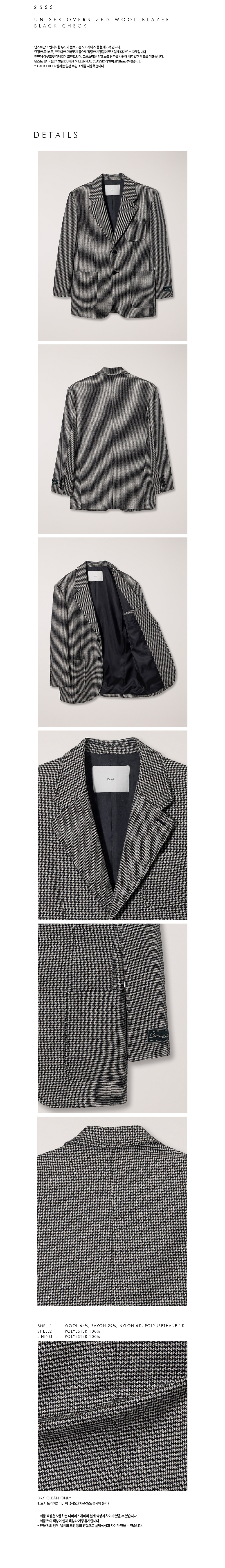 던스트 유니섹스 오버사이즈 울 블레이져 블랙 체크