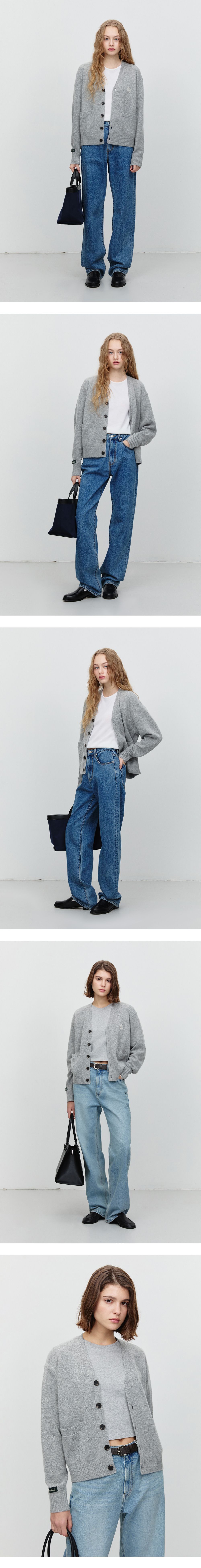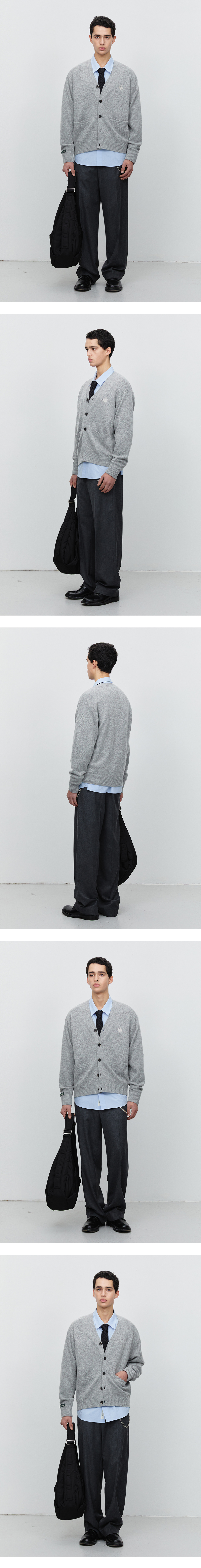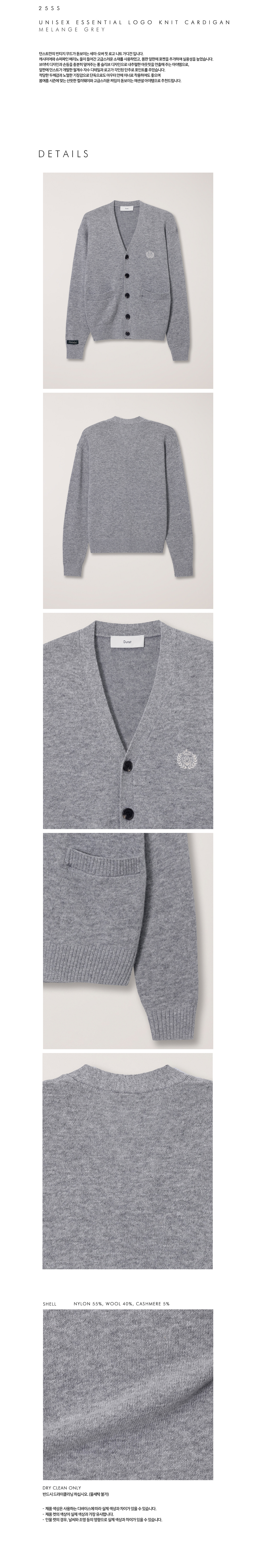 던스트 유니섹스 에센셜 로고 니트 가디건 멜란지 그레이