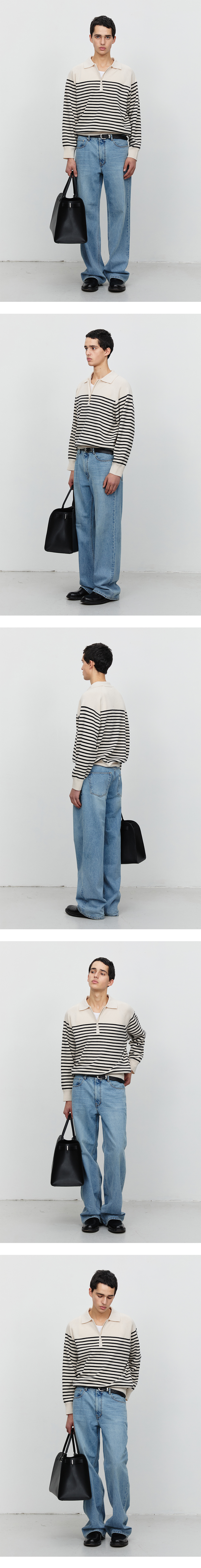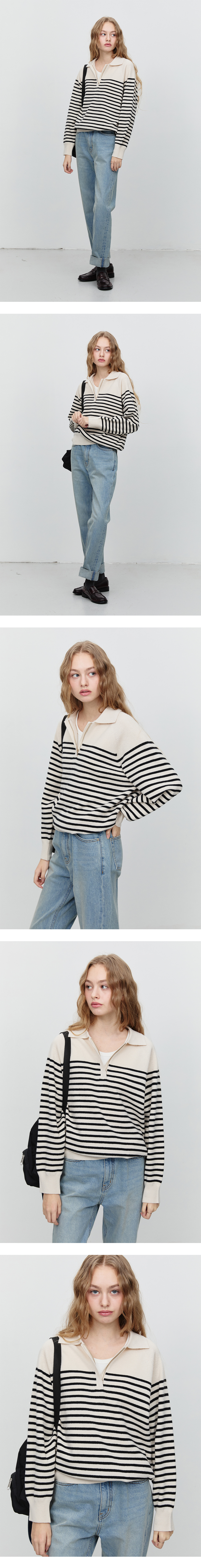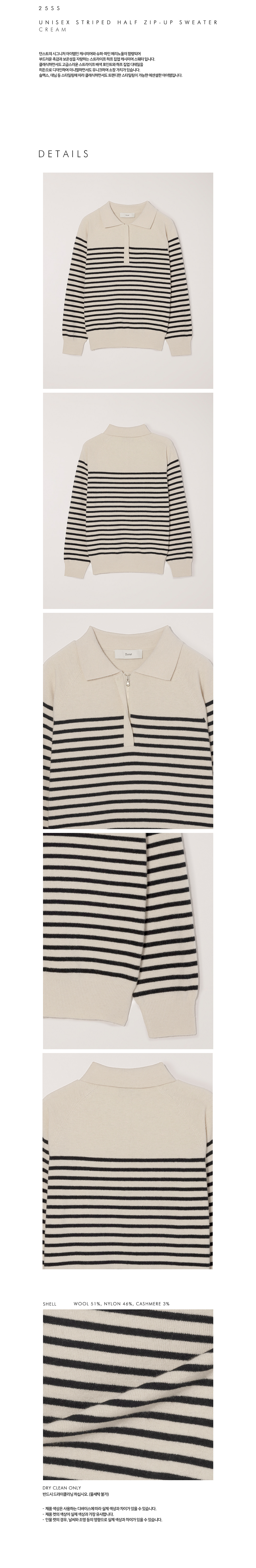 던스트 유니섹스 스트라이프 하프 집업 스웨터 크림