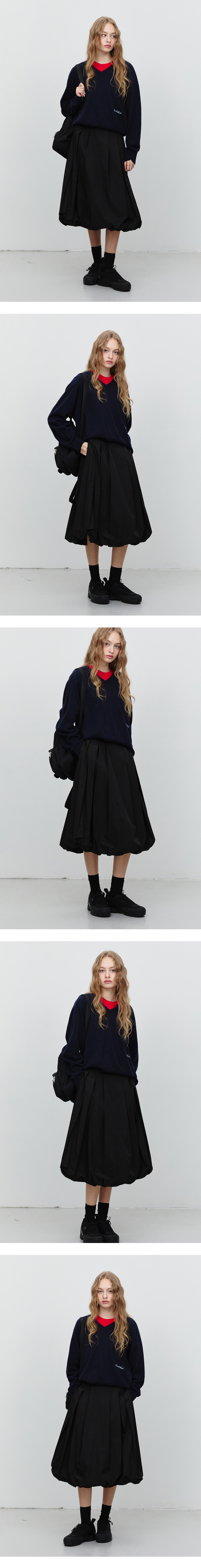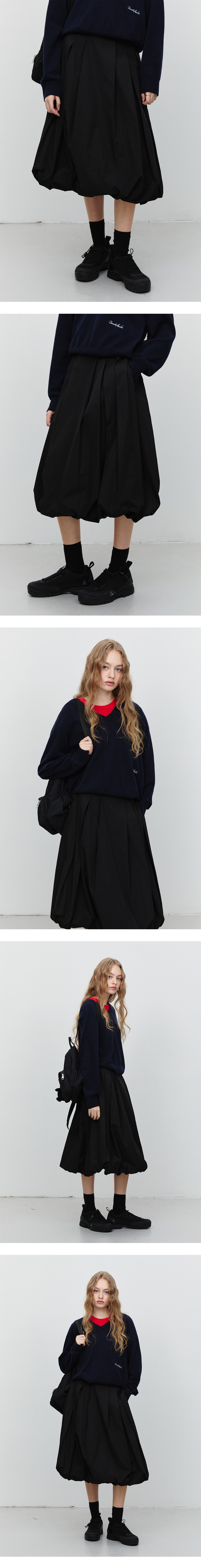 던스트 벌룬 미디 스커트 블랙