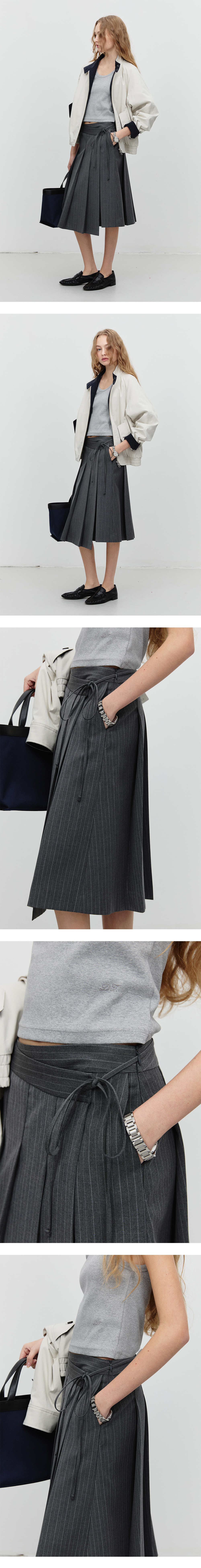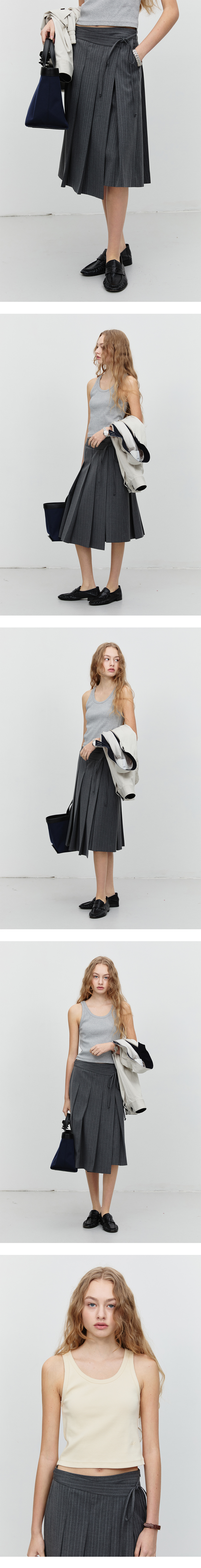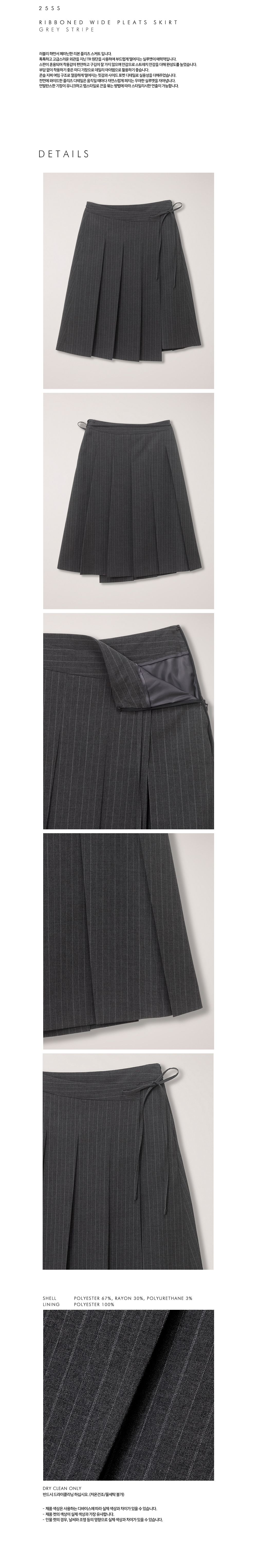 던스트 리본드 와이드 플리츠 스커트 그레이 스트라이프