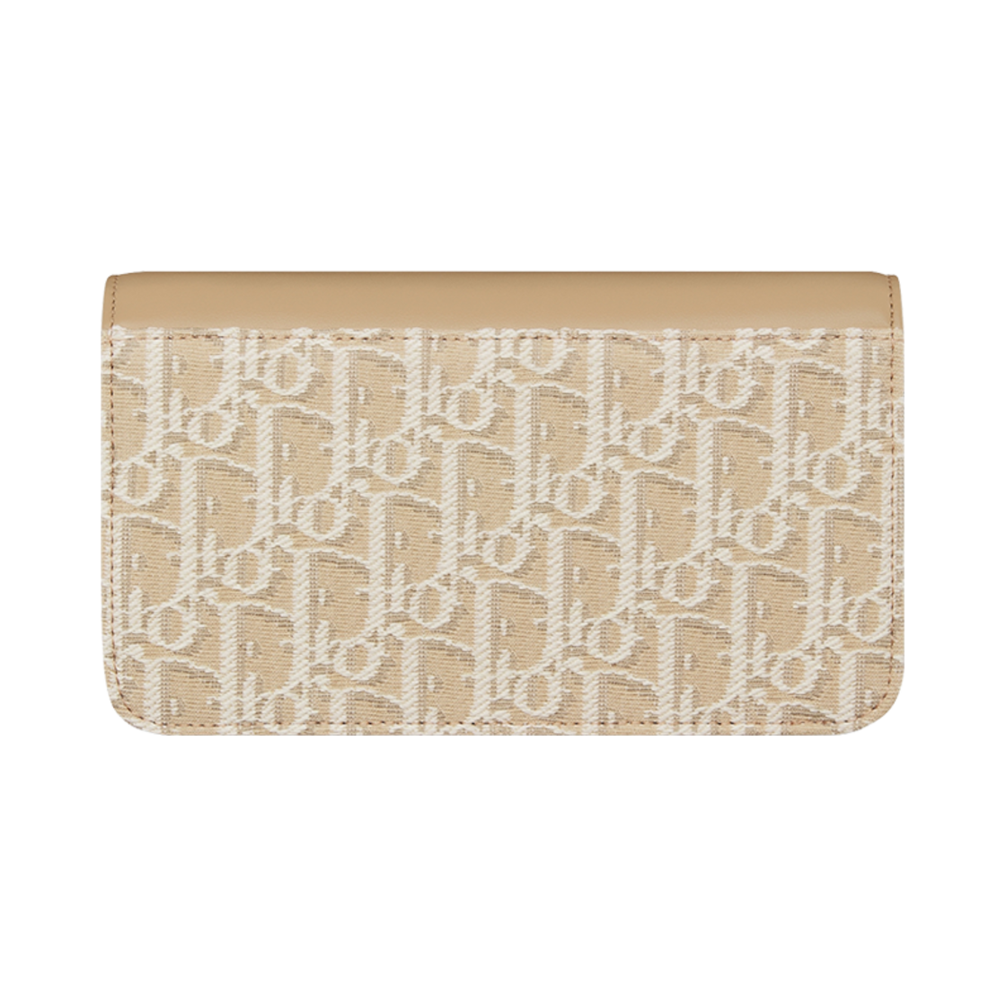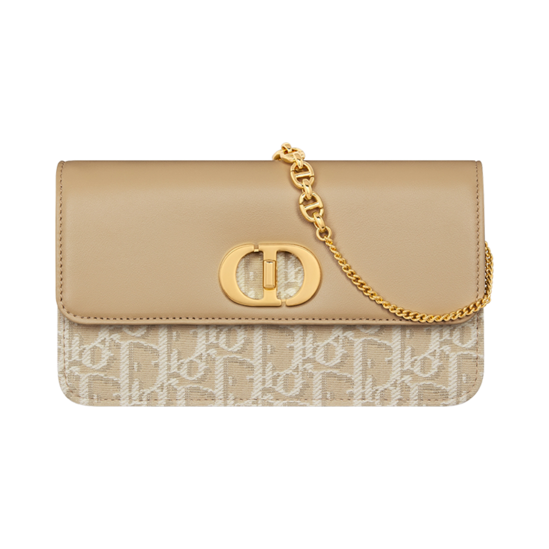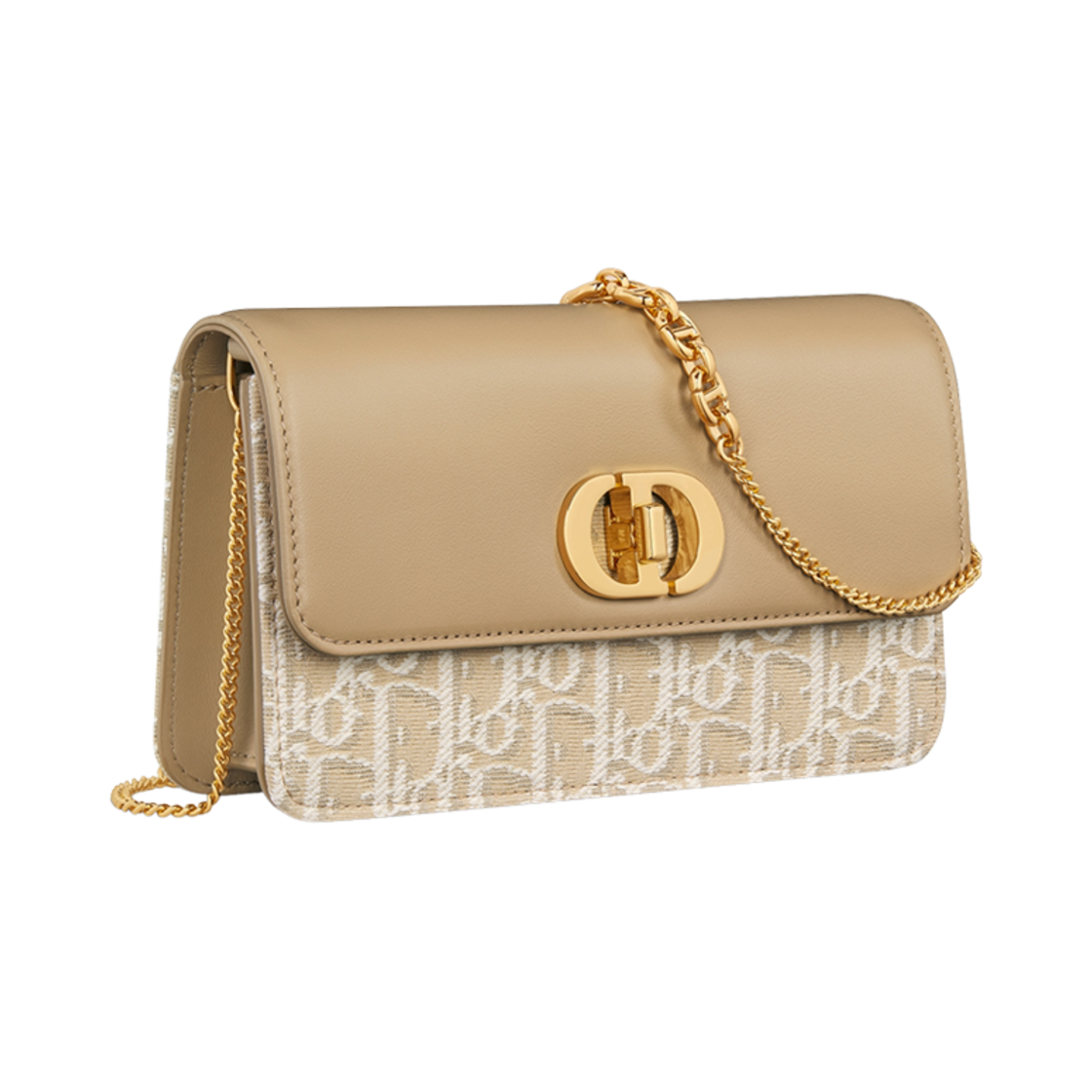 Dior Miss Caro Pouch with Chain Oblique Jacquard and Smooth Calfskin Beige