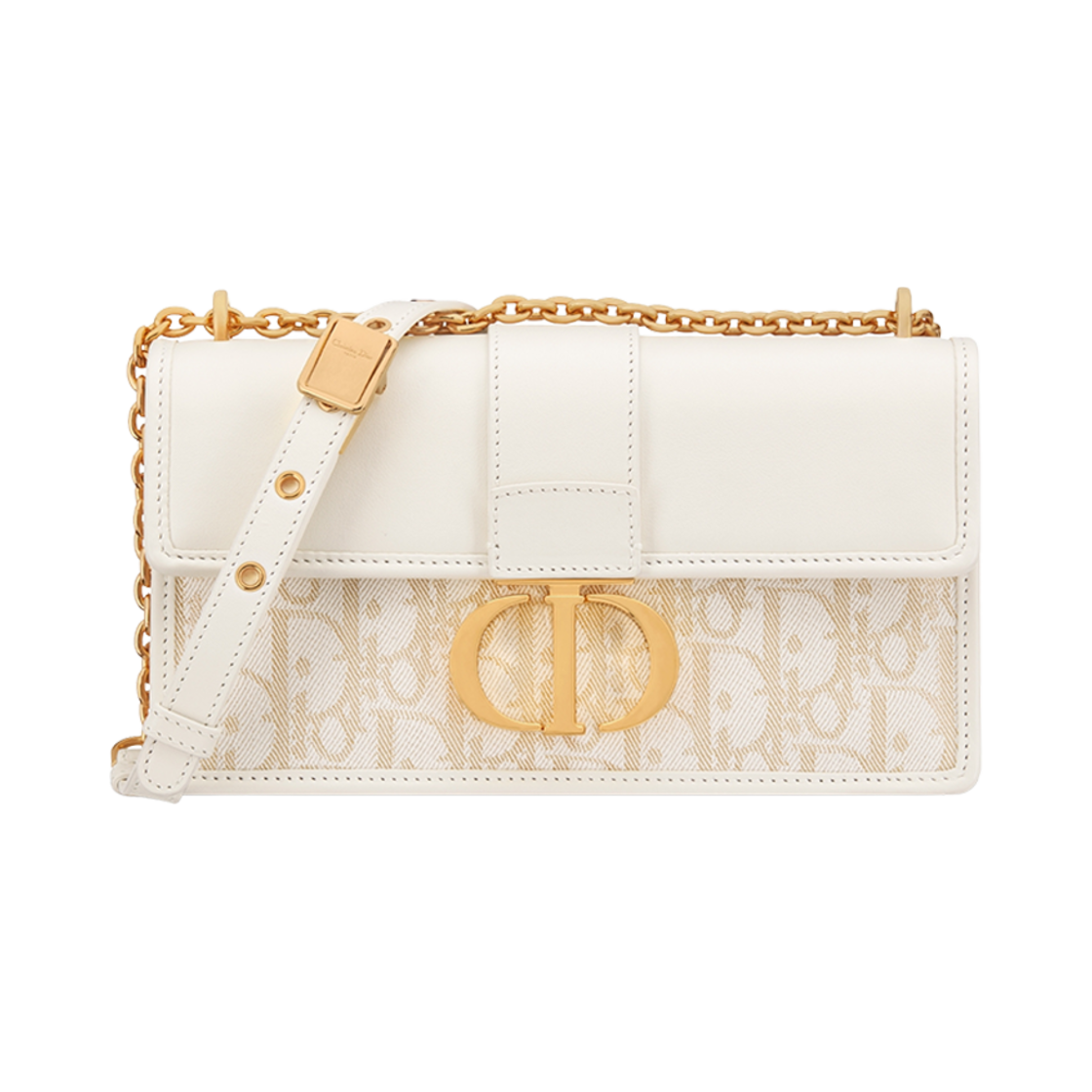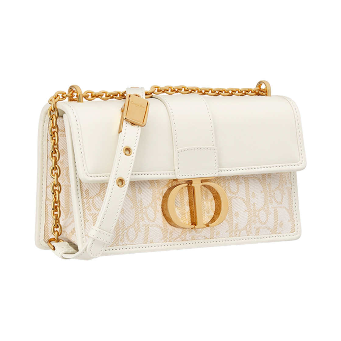 디올 30 몽테뉴 이스트 웨스트 백 체인 스무스 카프스킨 & 메탈릭 쓰레드 디올 오블리크 데님 라떼 골드