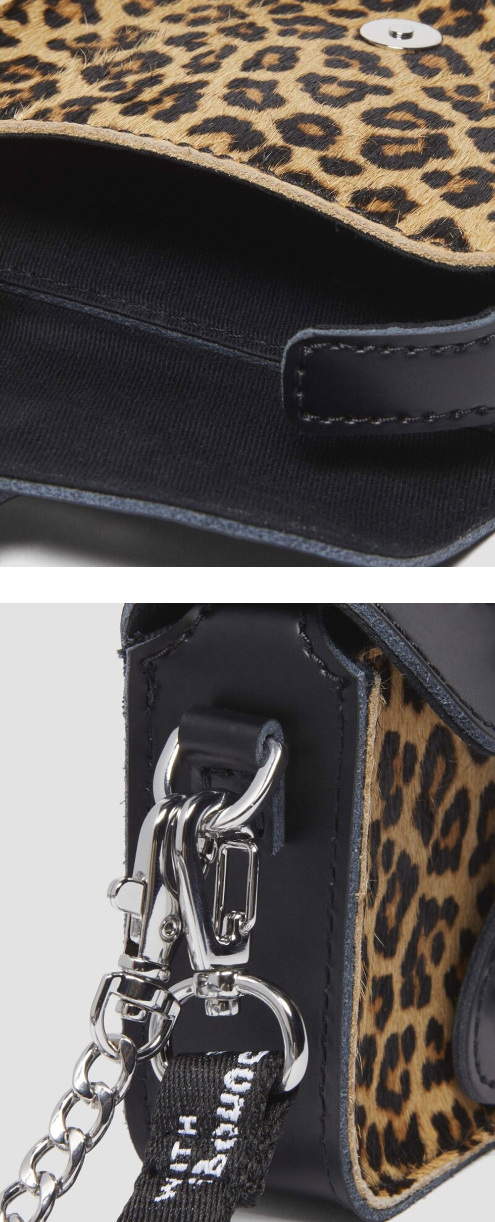 호피 무늬를 포인트로 활용하기 좋은 닥터마틴의 5인치 사첼 백 레오파드 클래쉬입니다. - 튼튼한 키프 가죽 - 헤어온 가죽 - 실버 체인