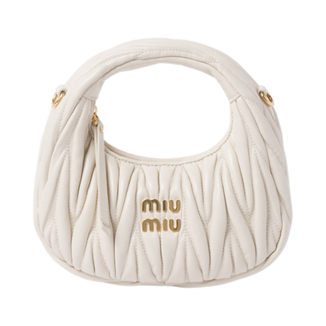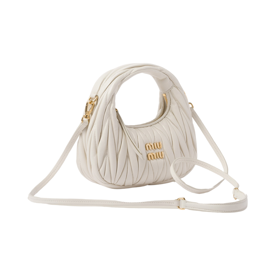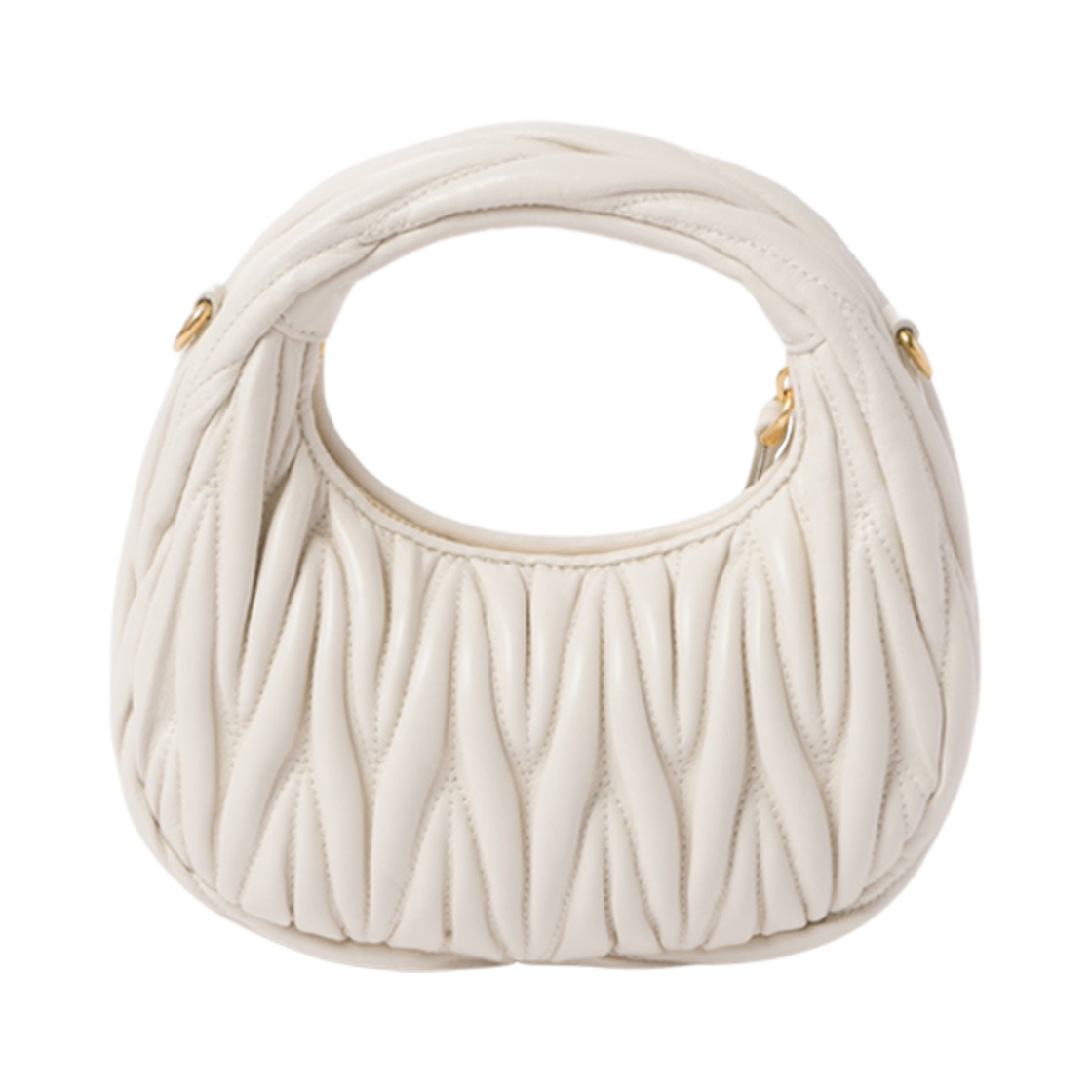 Miu Miu Wander Matelasse Nappa Leather Hobo Mini Bag White