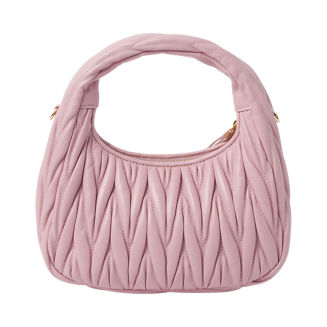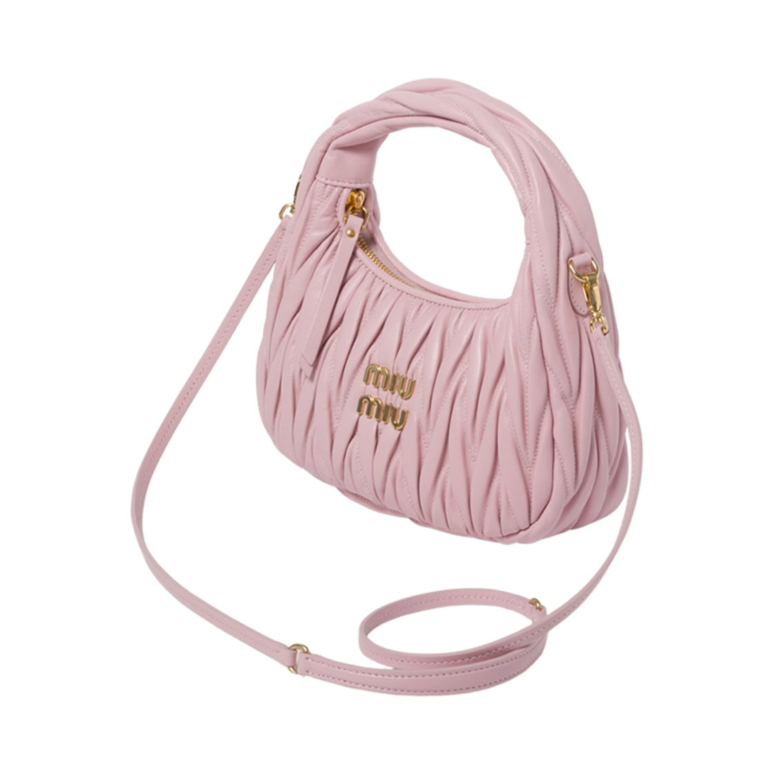 Miu Miu Wander Matelasse Nappa Leather Small Hobo Bag Alabaster Pink