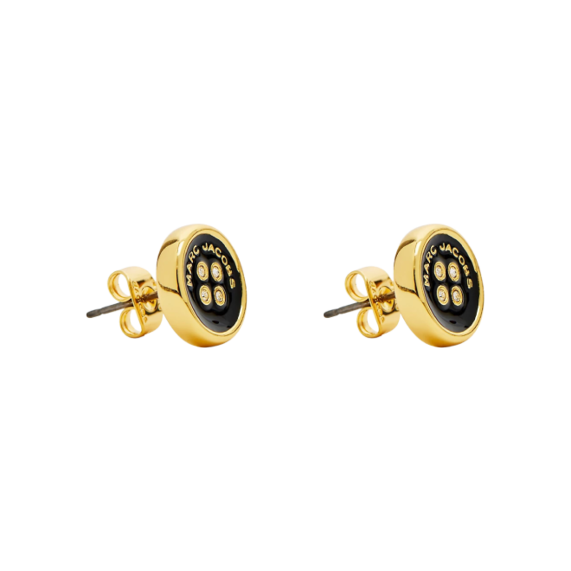 (W) Marc Jacobs The Button Stud Earrings Gold Black