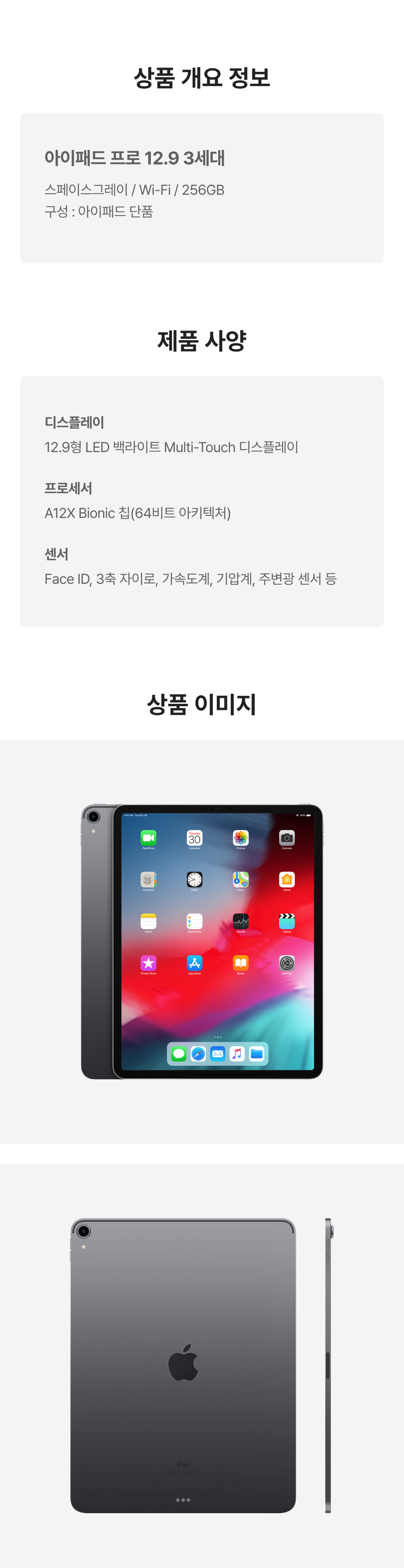 [A등급] 리퍼비시 아이패드 프로 12.9 3세대 wifi A12X Bionic 256기가 스페이스그레이