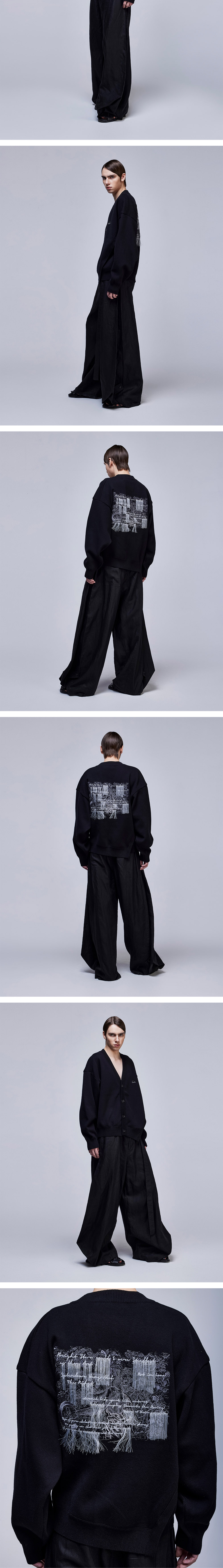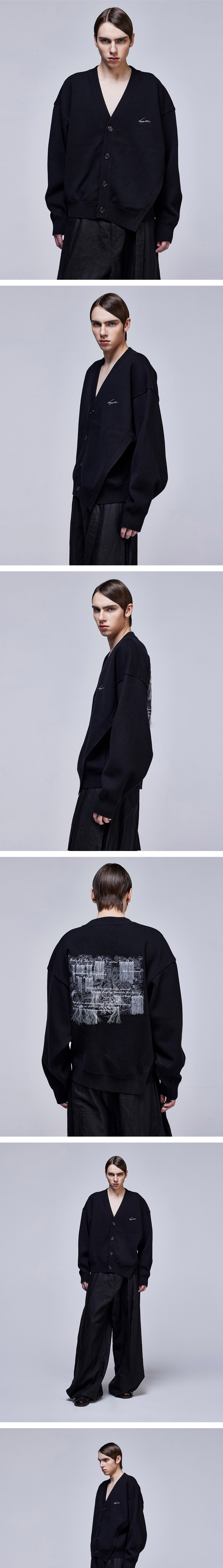 - 어시매트릭한 몸판과 실루엣 구성 - 전면 'SONGZIO AUTOGRAPH' 자수 디테일 - 뒷면 'MIRROR YOUTH' 엠브로이드 자수 구성 - 톡톡하고 고시감 있는 코튼 캐시미어 원사 - 레이어드 코디에 용이한 V넥 가디건 - MADE IN VIETNAM