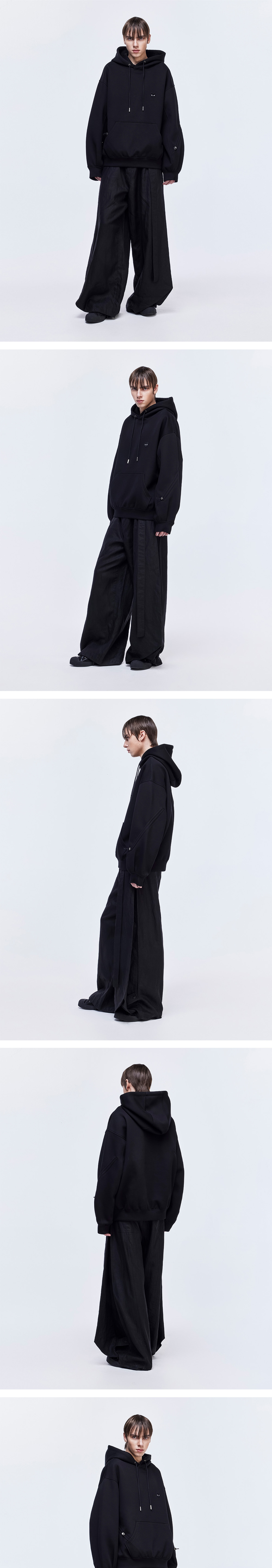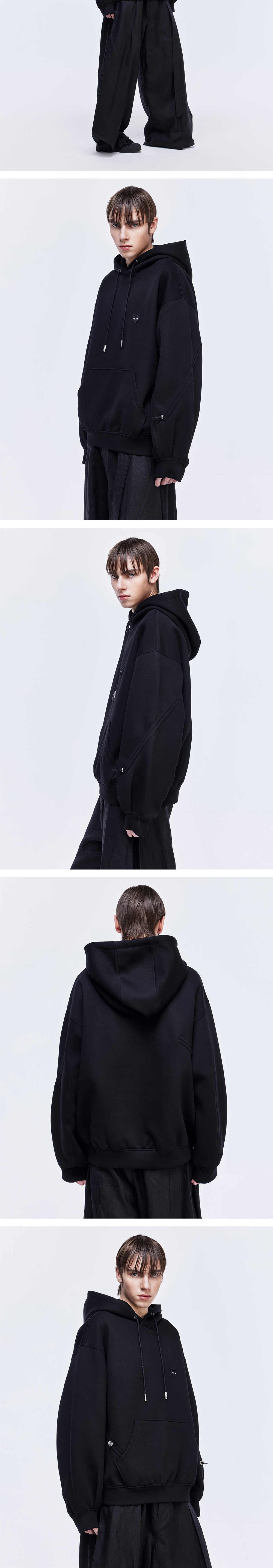 - 볼륨 디비언트 후드 - 부드러우면서 탄탄한 소재 구성 - 입체 패턴과 턱을 이용한 시그니처 오버핏 실루엣 - 소매 엘라 스트링 디테일로 다양한 실루엣 연출 - 전면 '그레이 아이즈' 펜서 와펜 - 후면 지제로 로고 금속 장식 - MADE IN CHINA