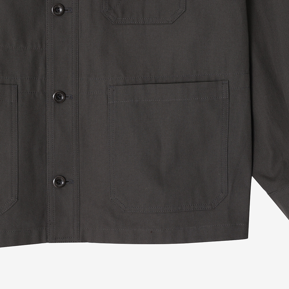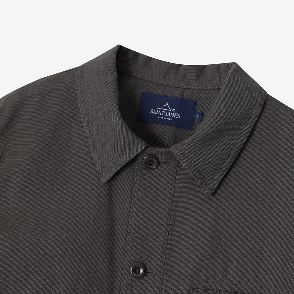 한국에서 진행한 Saint James 라이센스 스타일. 옥스포드 조직감의 코튼 원단을 사용한 숏자켓. 곳곳에 포켓, 스티치 등 워크웨어에서 영감을 받은 디테일이 특징이다.