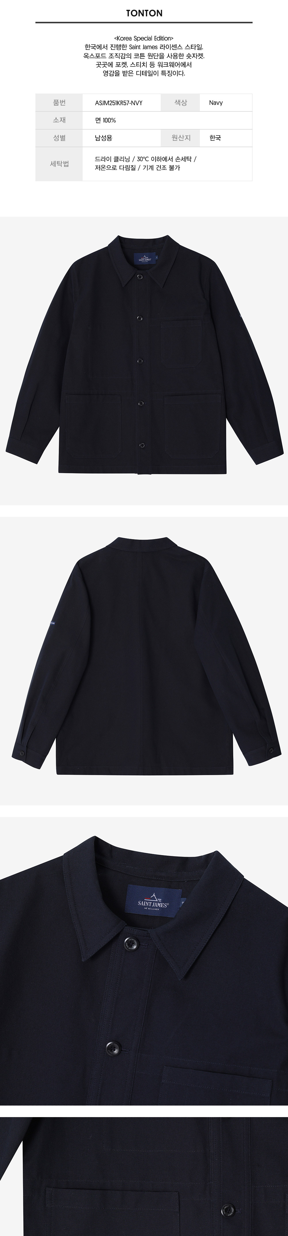 <Korea Special Edition> 한국에서 진행한 Saint James 라이센스 스타일. 옥스포드 조직감의 코튼 원단을 사용한 숏자켓. 곳곳에 포켓, 스티치 등 워크웨어에서 영감을 받은 디테일이 특징이다.
