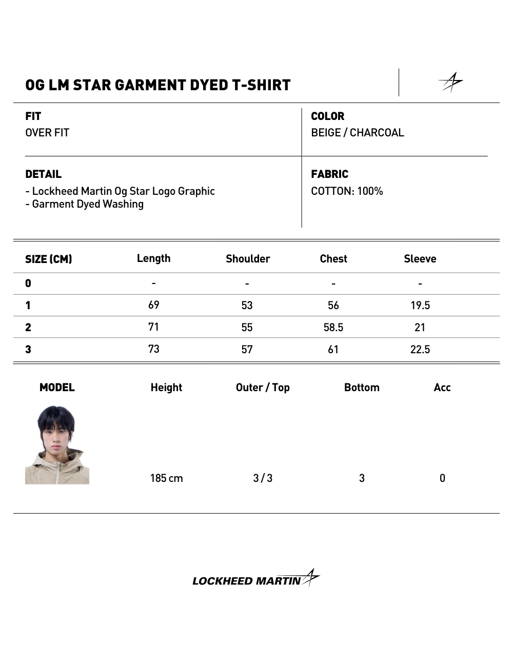 록히드마틴 OG LM 스타 가먼트 다이드 티셔츠 베이지