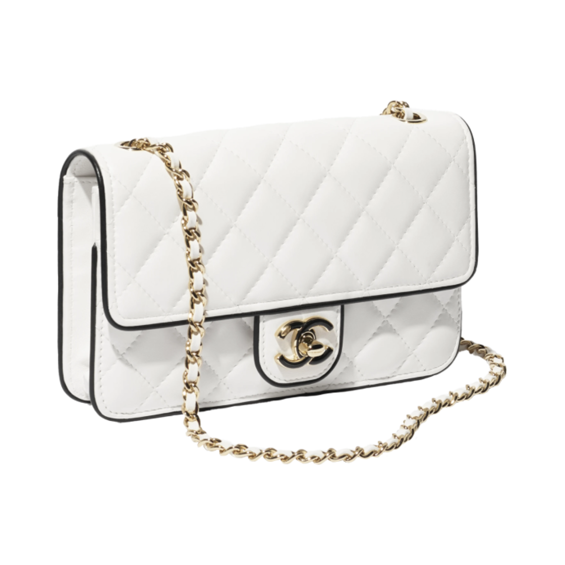샤넬 체인 지갑 램스킨 & 골드 메탈 화이트 블랙