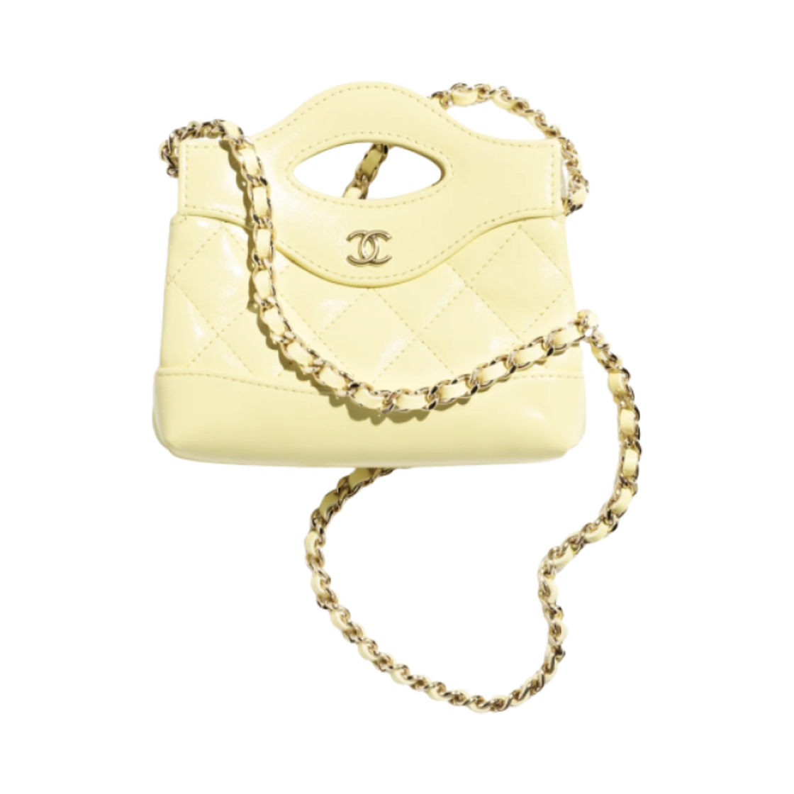 샤넬 체인 달린 미니백 샤이니 램스킨 & 골드 메탈 라이트 옐로우