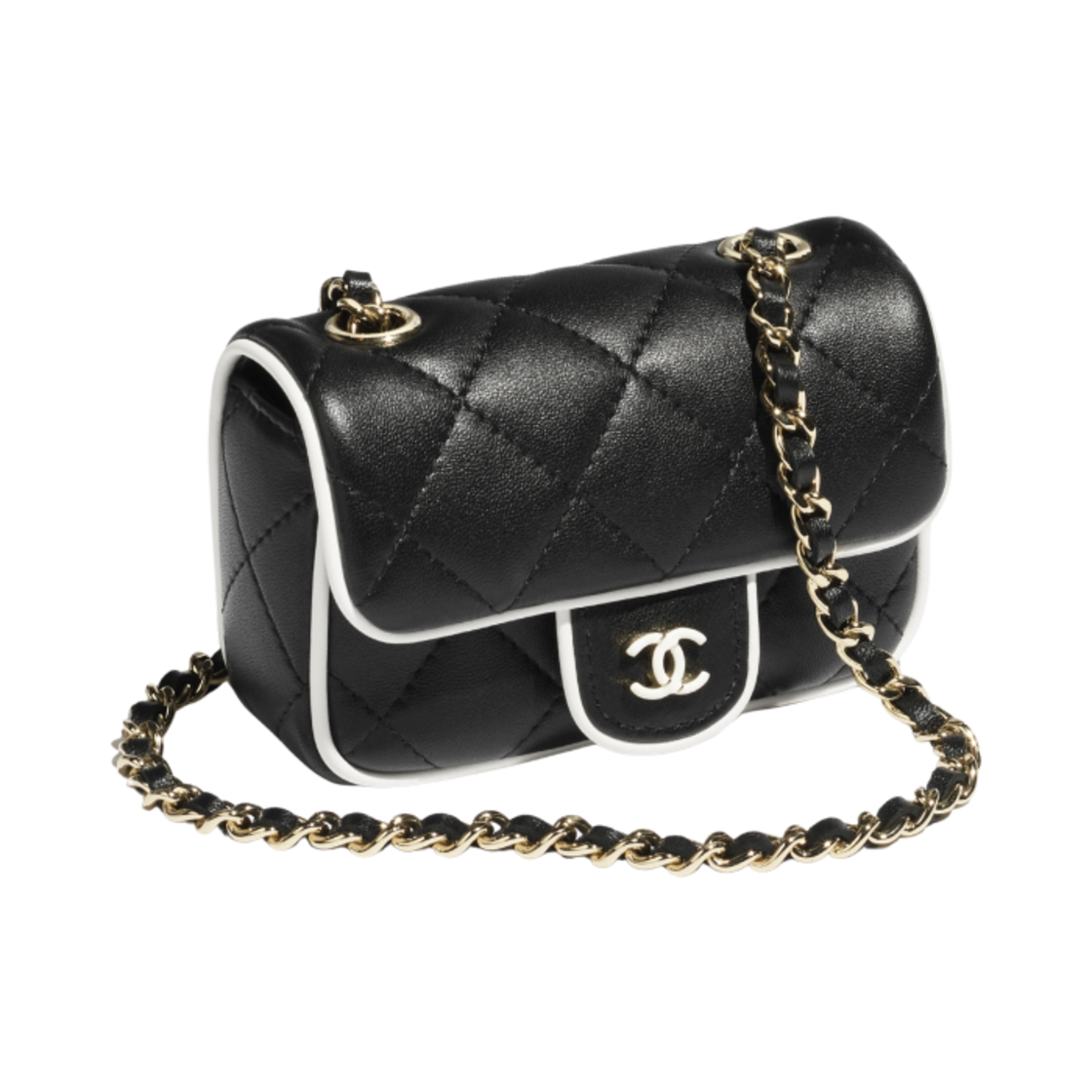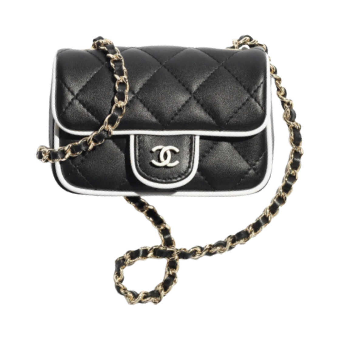 샤넬 체인 달린 미니백 램스킨 & 골드 메탈 블랙 화이트