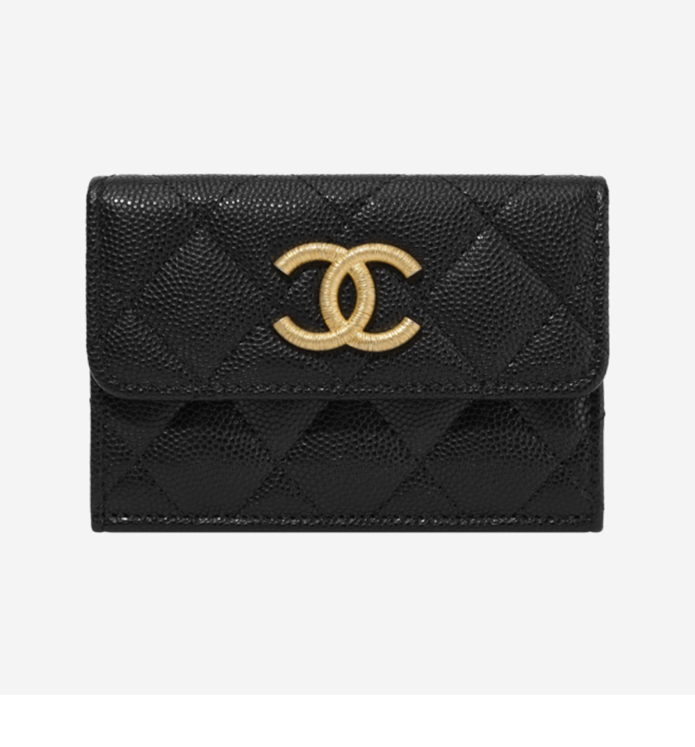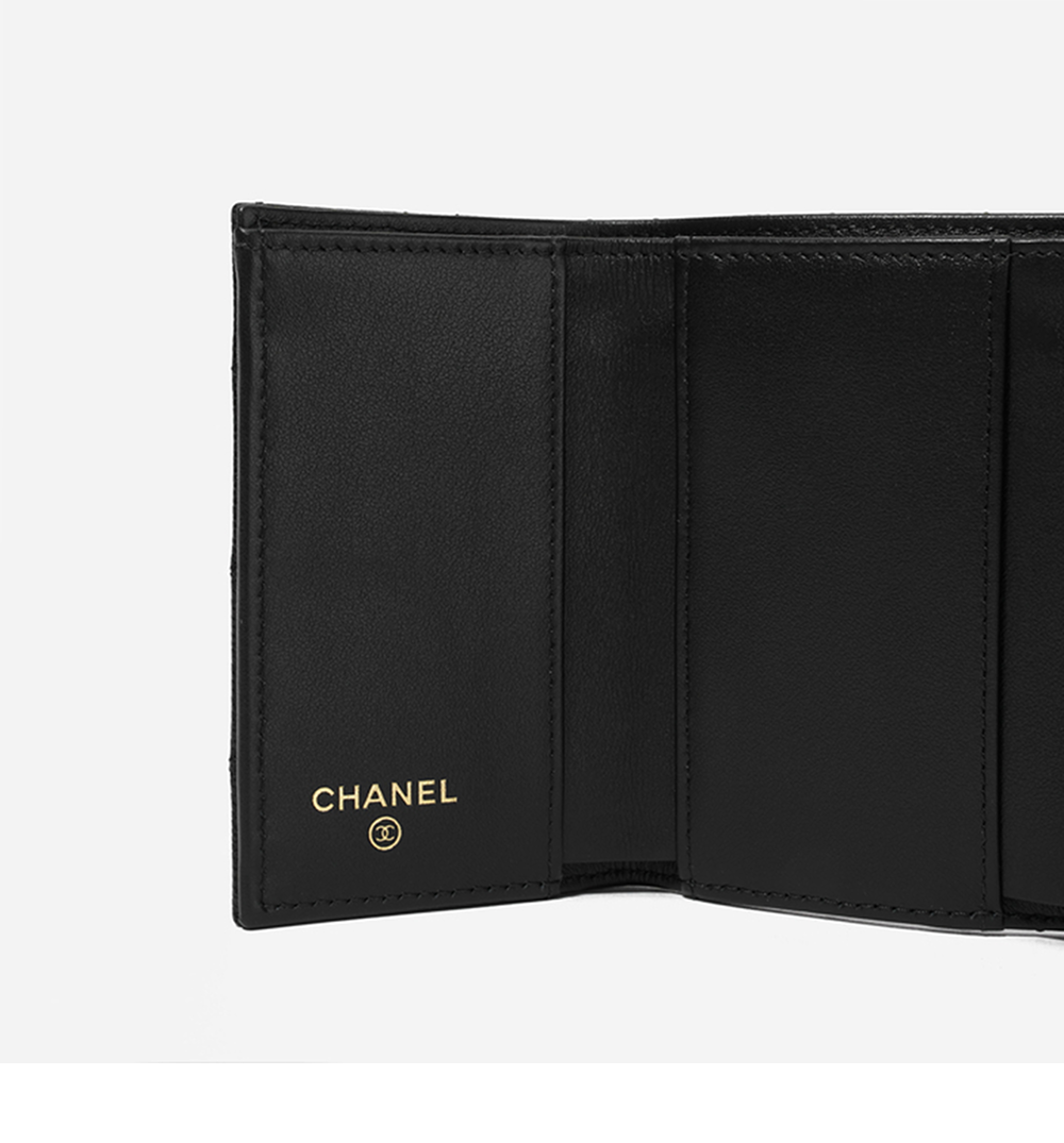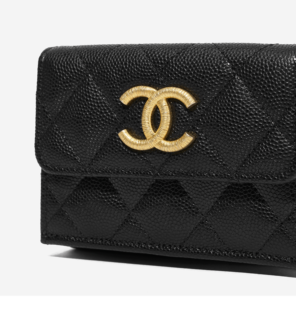 샤넬 스몰 플랩 지갑 그레인드 샤이니 카프스킨 & 골드 메탈 블랙