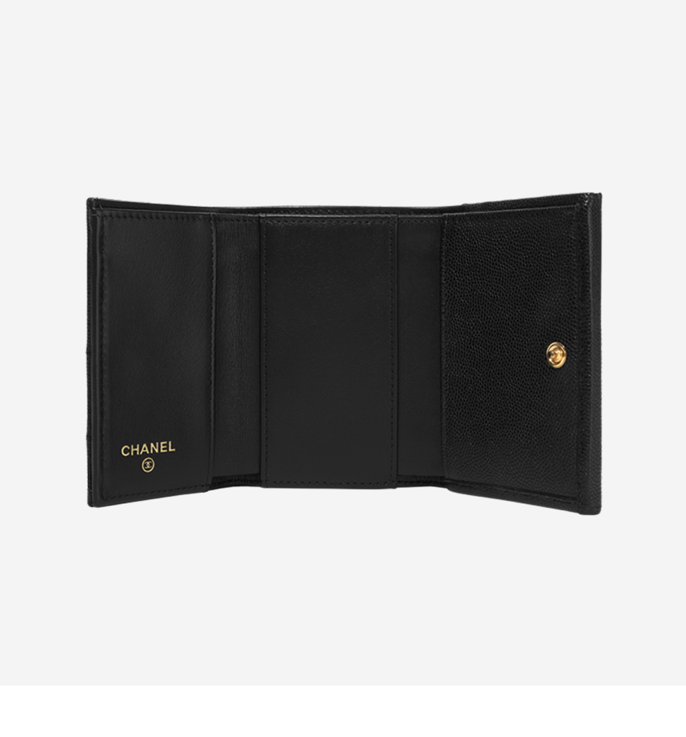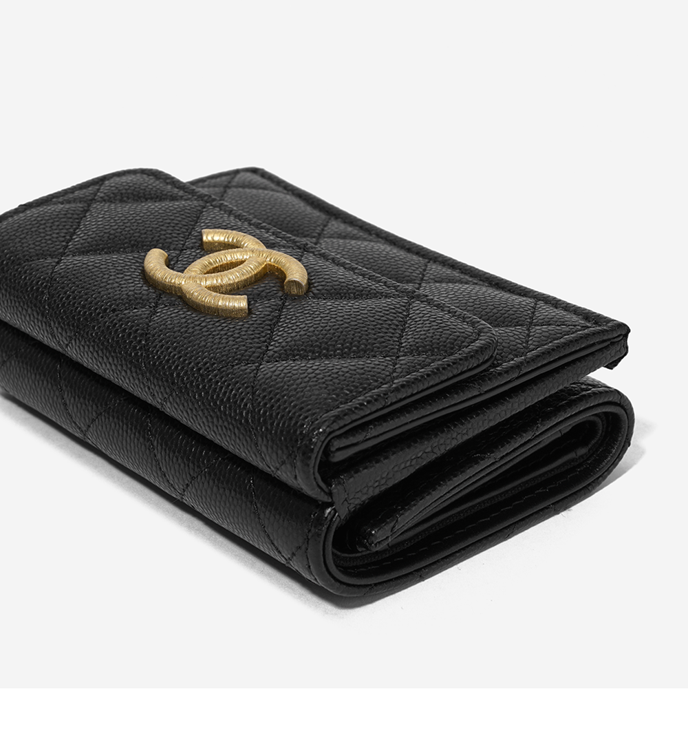Chanel Small Flap Wallet Grained Shiny Calfskin & Gold Black
