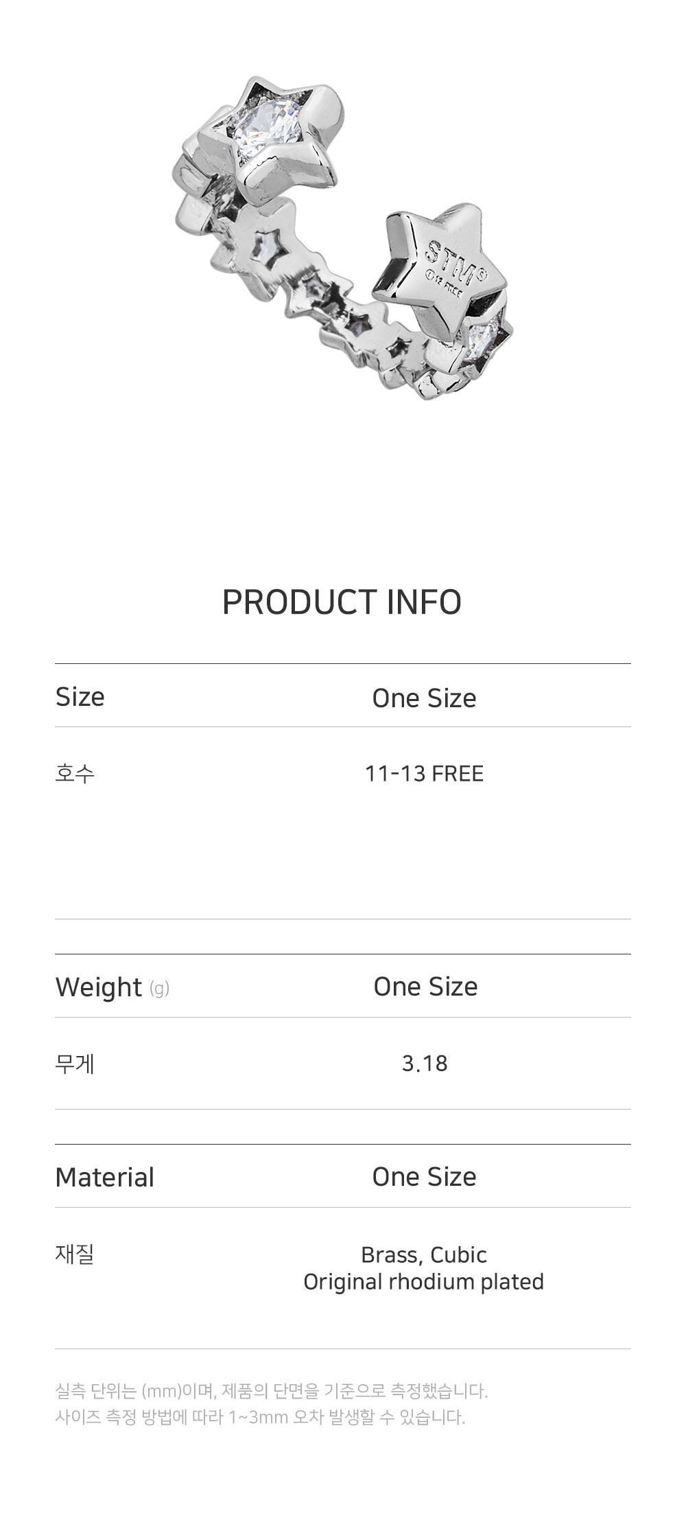 센티멍 넘버 559 스타 큐빅 링 실버