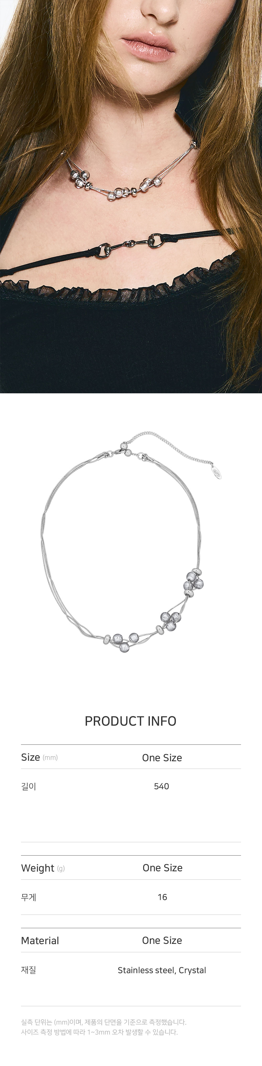 센티멍 넘버 569 크리스탈 볼 네크리스 실버